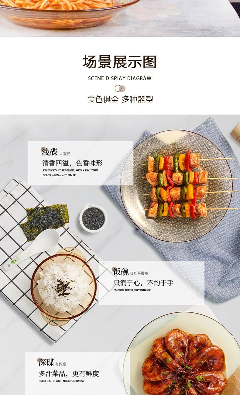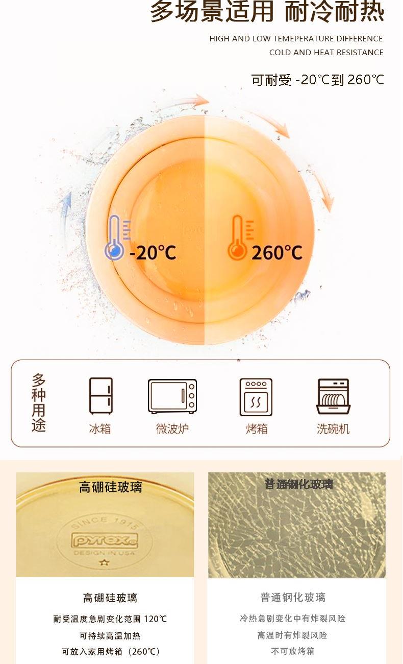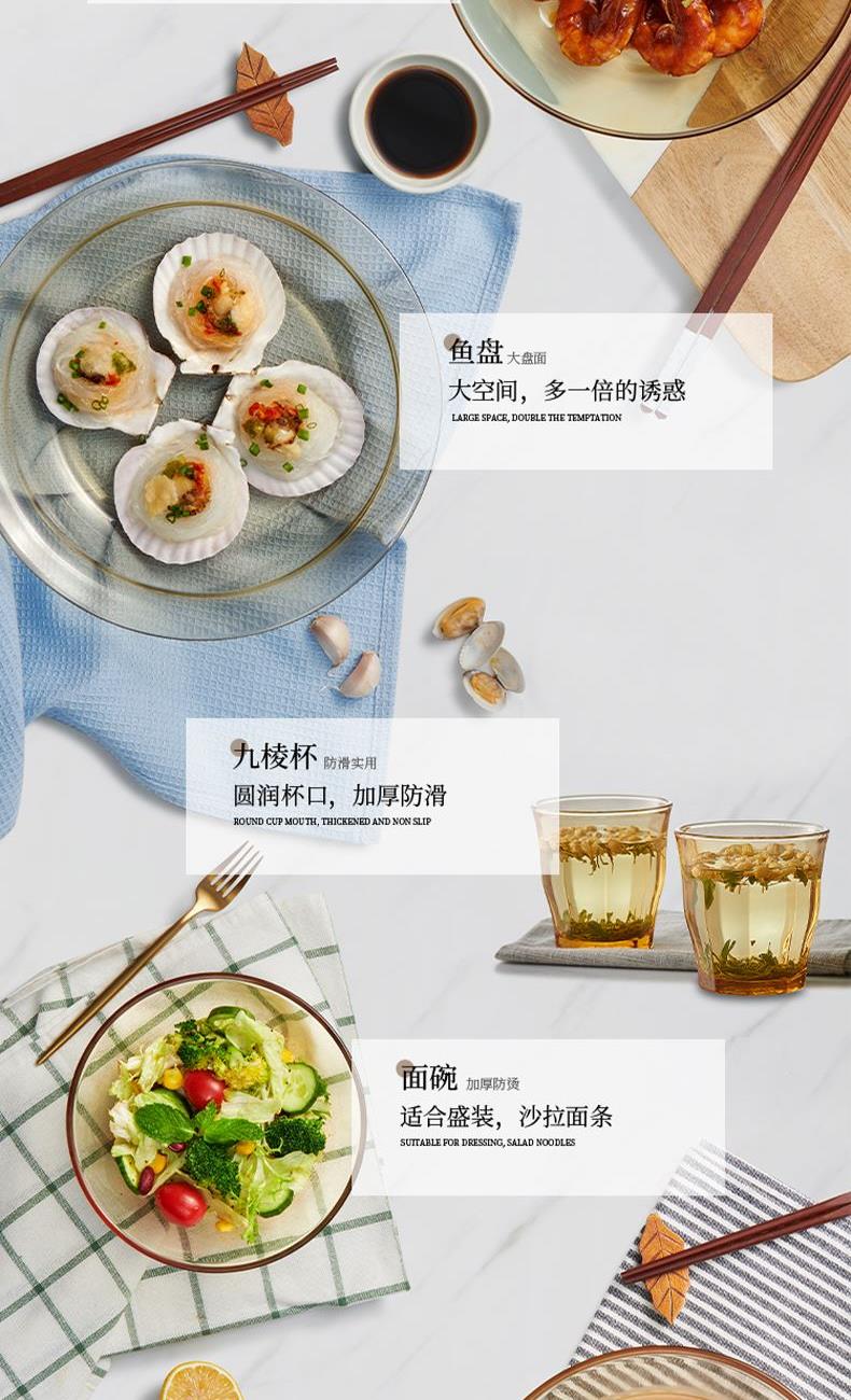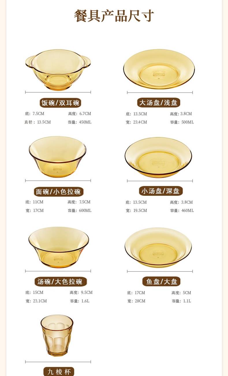 型号:PX-SY12A/HP 69码:6958608137670 产地:中国 材质:高硼硅耐热玻璃 净重:5.56kg 毛重:6.8kg 组合:2个大汤盘+4个小汤盘+4个饭碗+1个汤碗+1个鱼盘 高硼硅玻璃材质,低膨胀率高防抗裂。实测高温耐受260°、低温耐受-20°,温差场景转化无忧,实用性强。 加厚设计,防烫耐磨:壁身、碗底均加厚0.5cm,触感厚实,防烫手耐磨损。