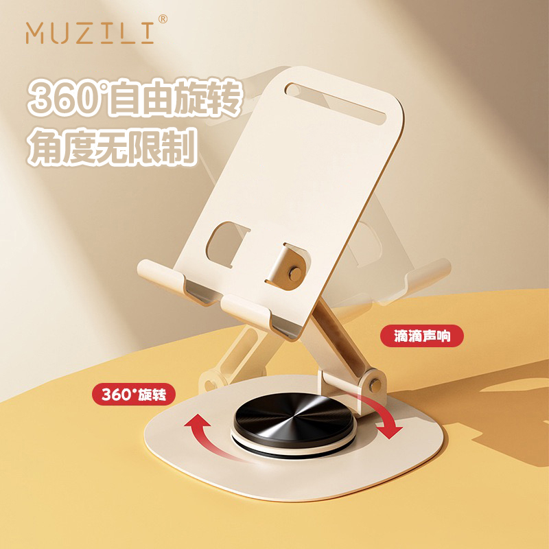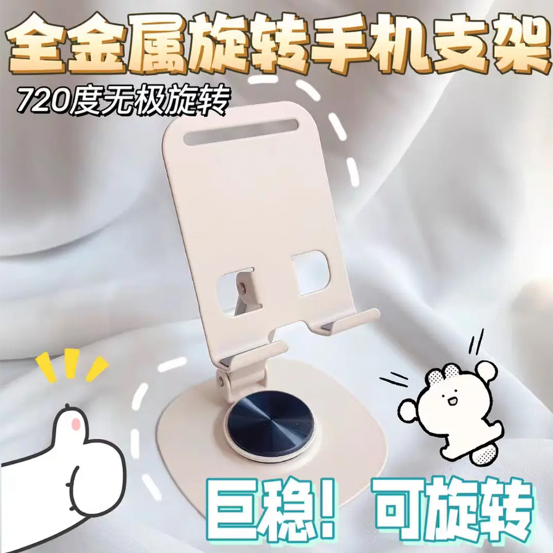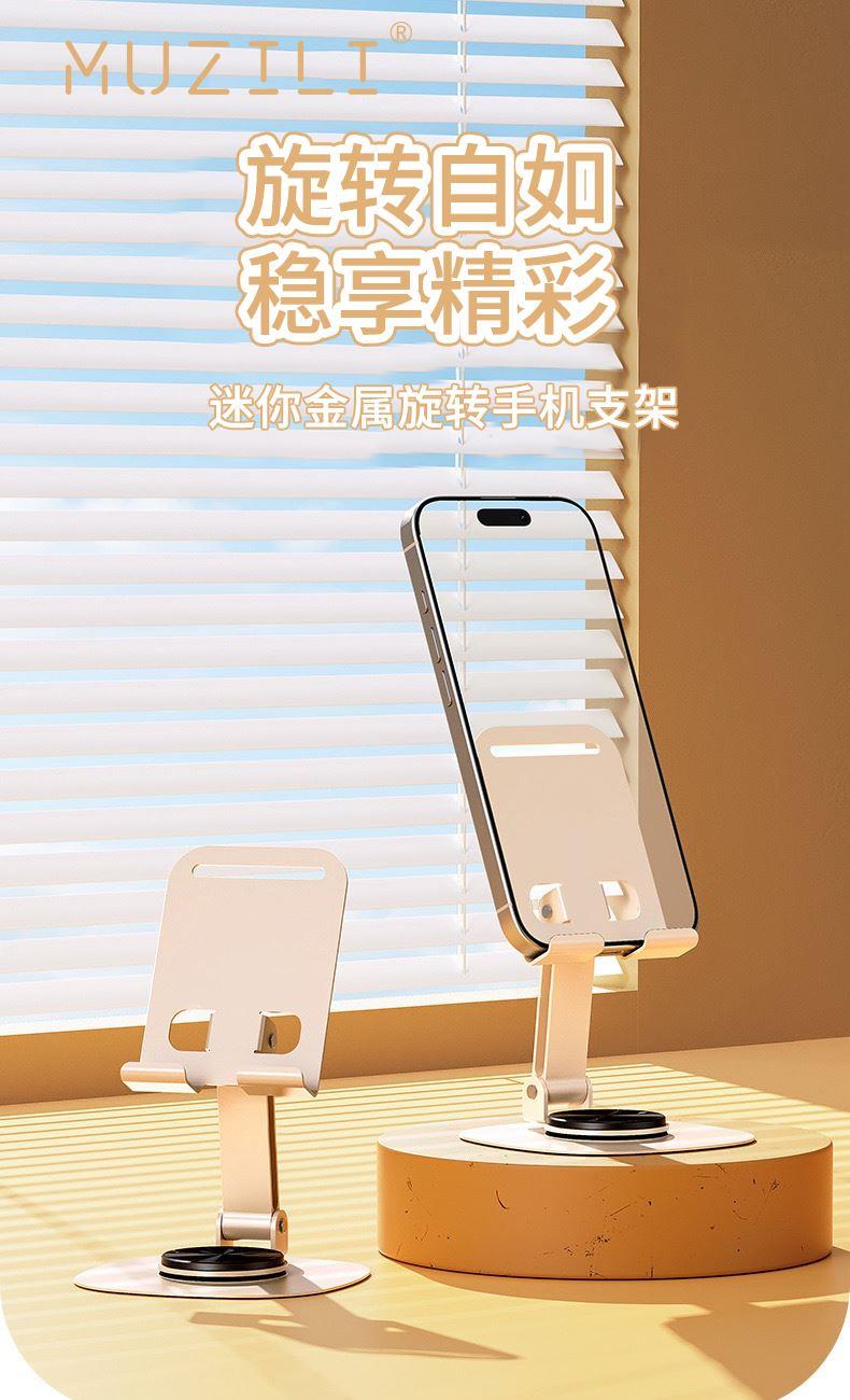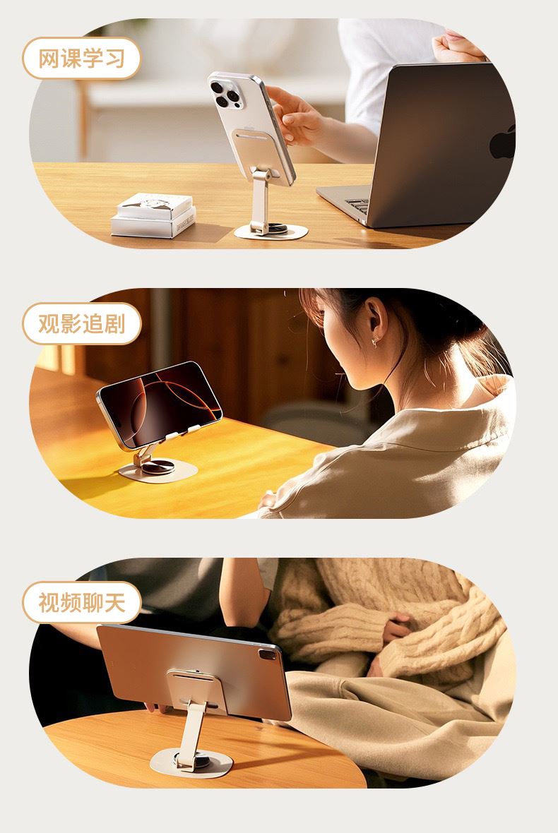 金属材料支架,增加防滑脚垫 360°可旋转底座 支撑力强劲,手机/平板通用 预留充电位,边用边充