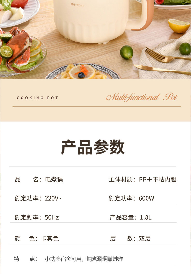 锅面直径:18cm 锅体材质:铝合金 容量:1.8L 颜色:黄色系 认证型号:DGLZ-15AL 涂层材质:麦饭石涂层 档位:无档位调节 额定电压:220V 额定功率:600W 特征特质:快速蒸汽 烤涮两吃 类型:多功能锅 操控方式:旋钮式