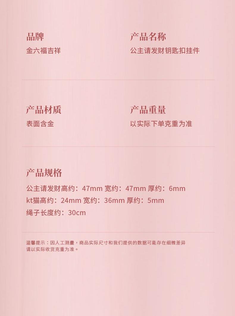 公主请发财高约:47mm 宽约:47mm 厚约:6mm kt猫高约:24mm 宽约:36mm 厚约:5mm 绳子长度约:30cm