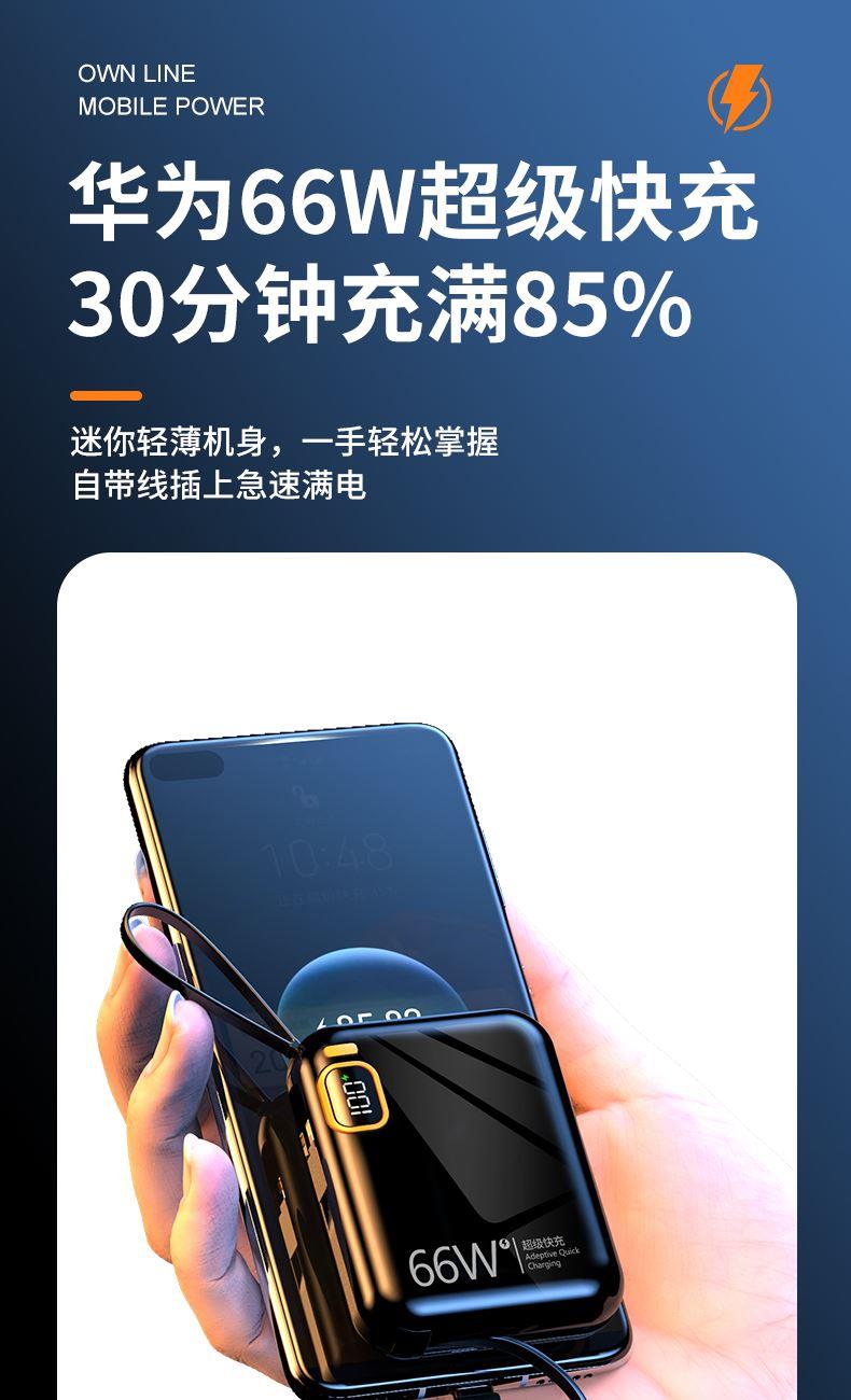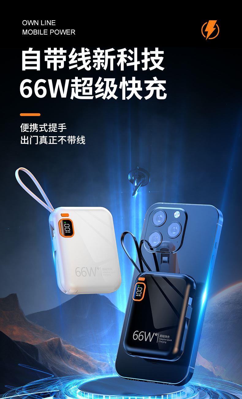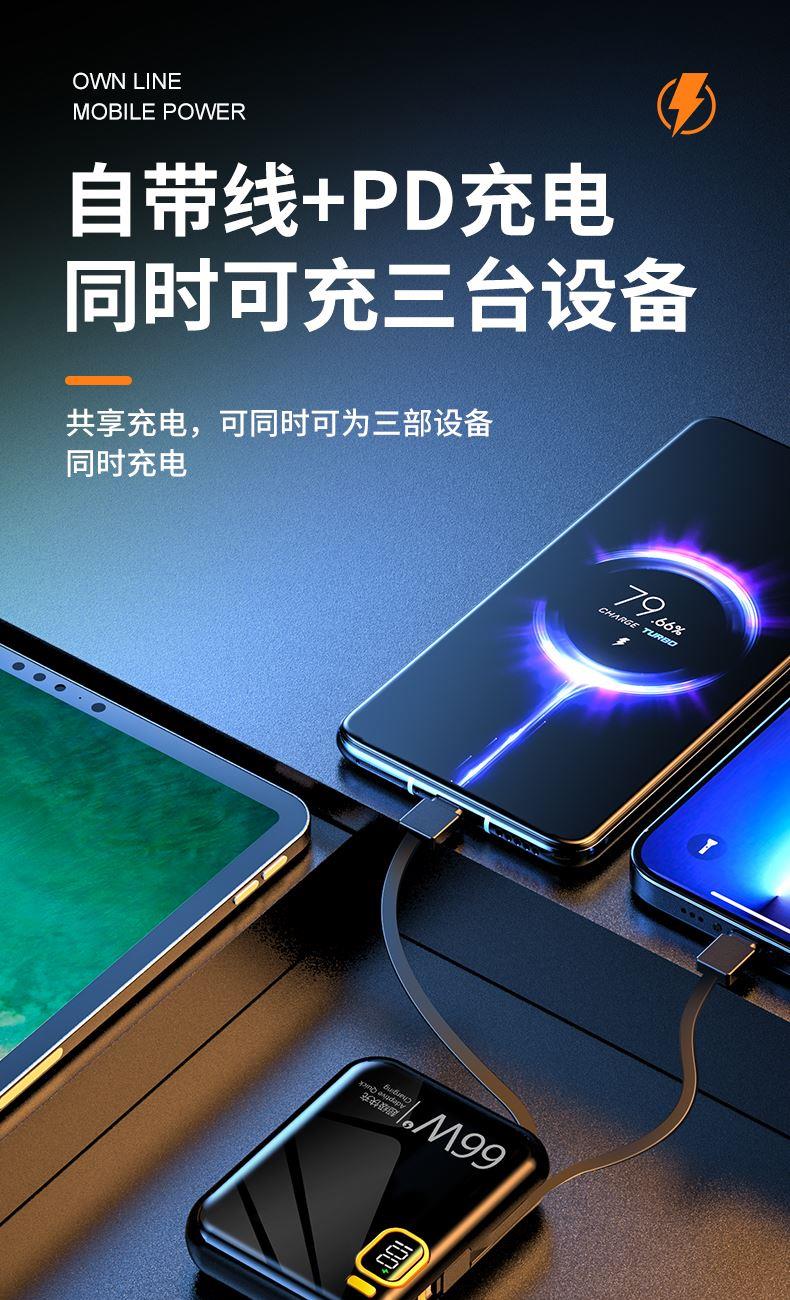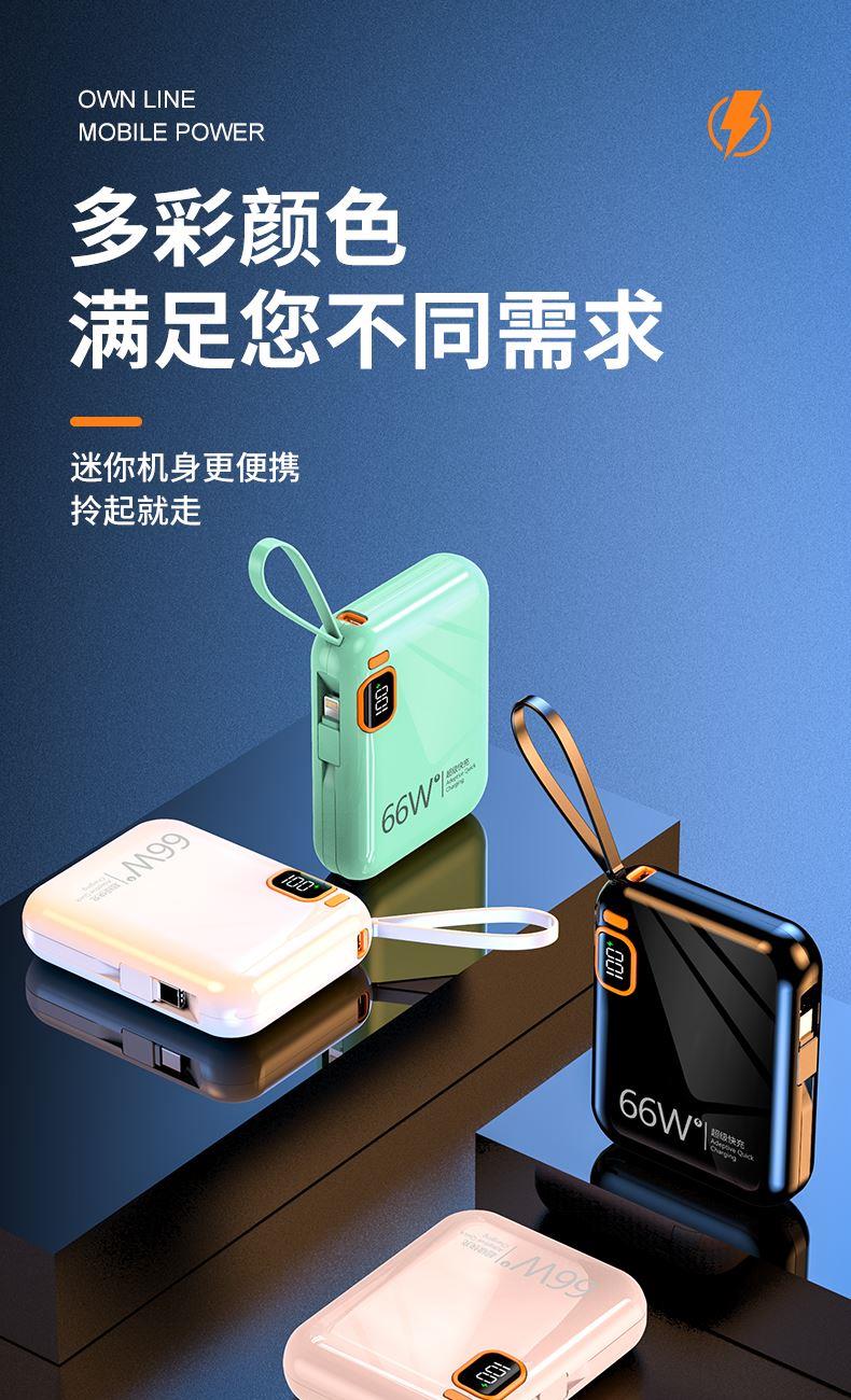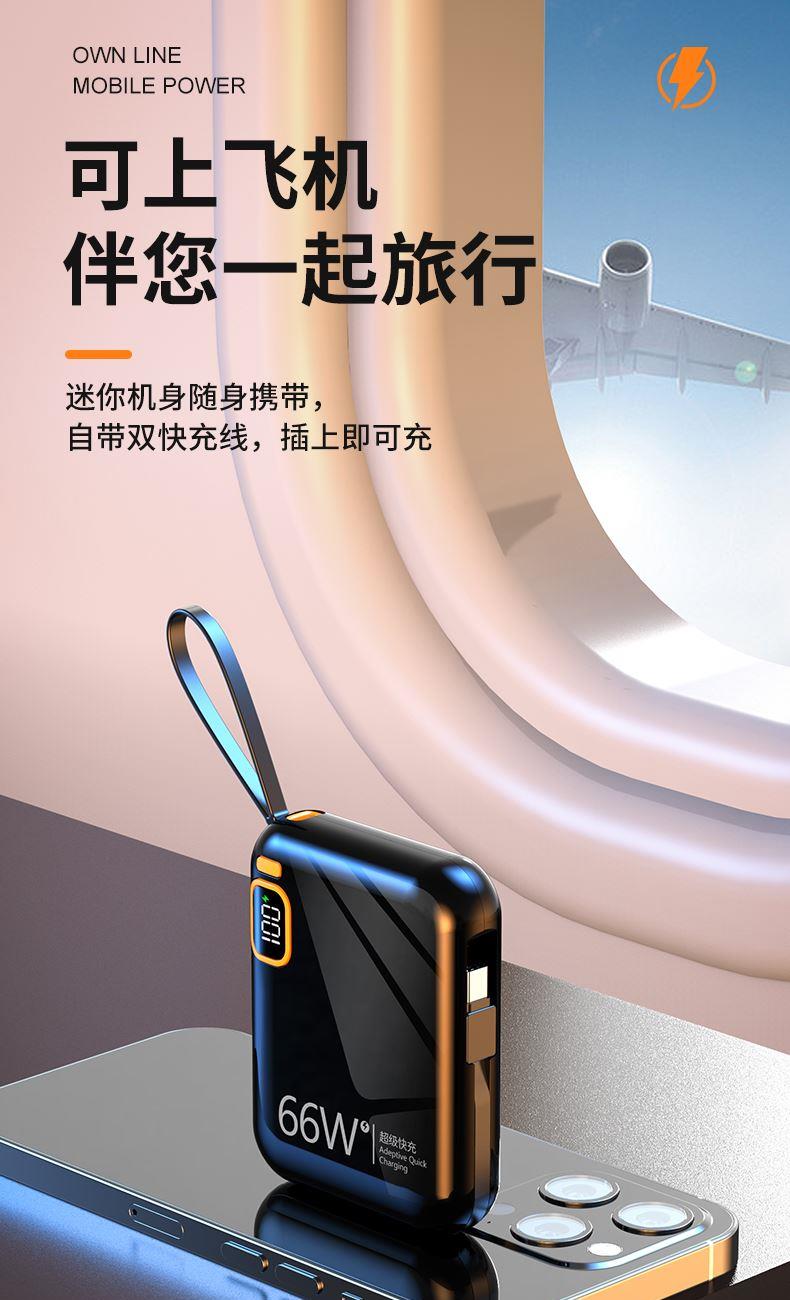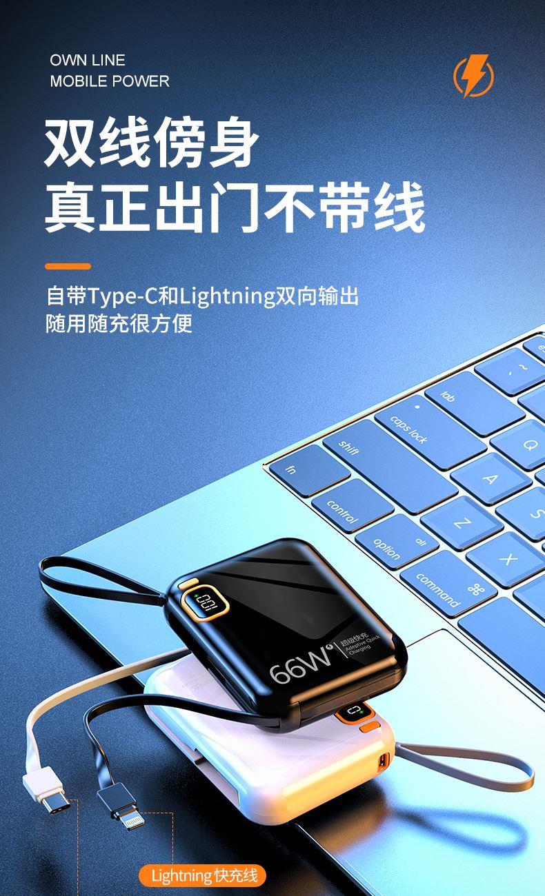 黛悦迷你自带线66w闪充移动电源超级快充充电宝现货秒发带3c