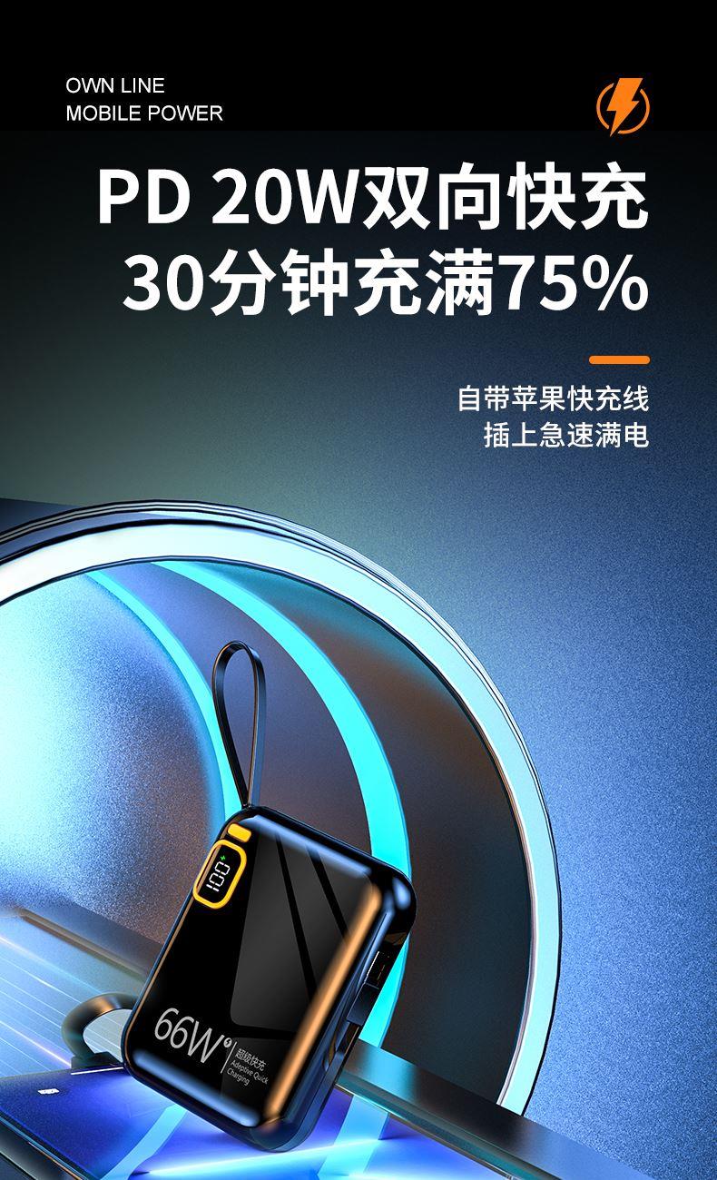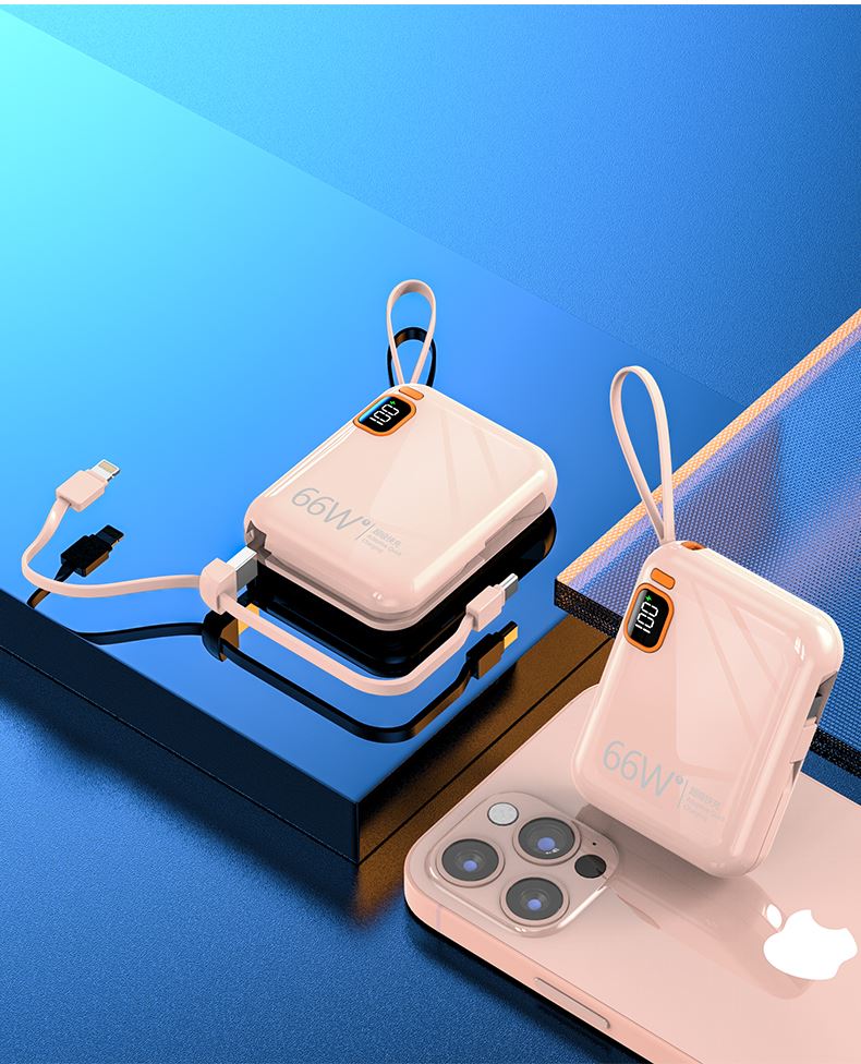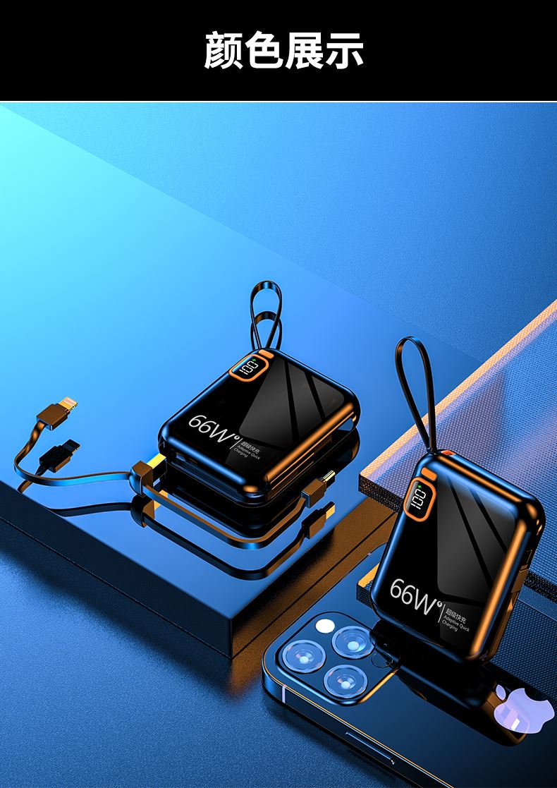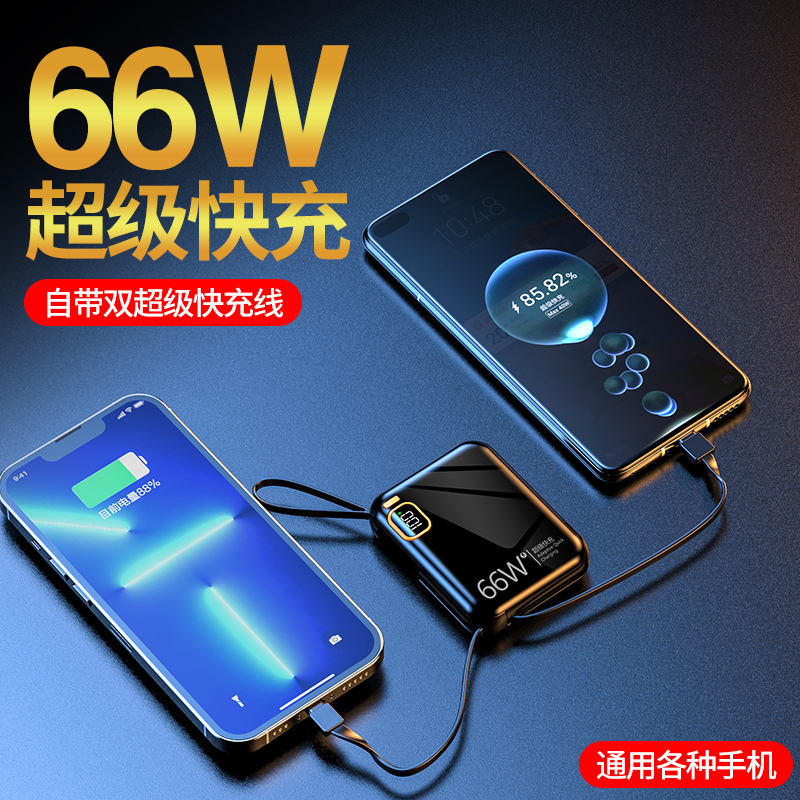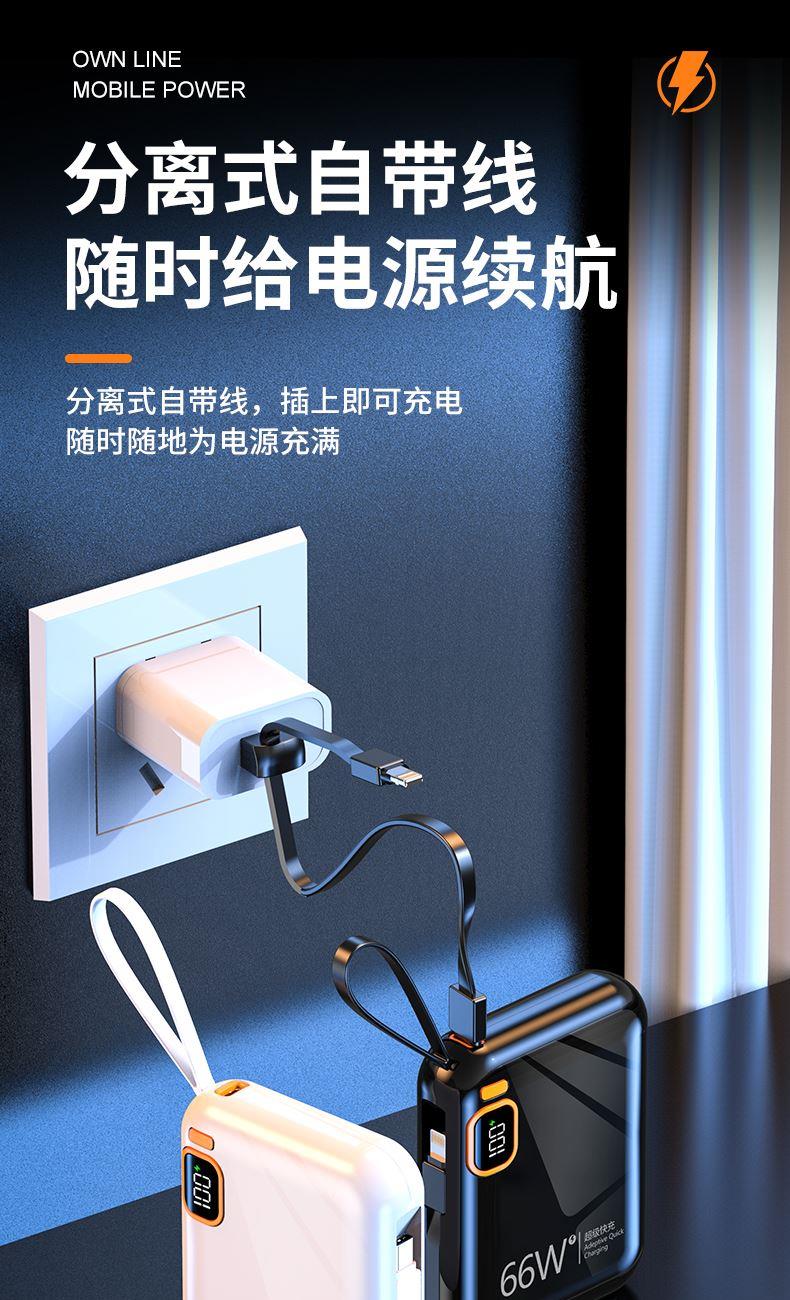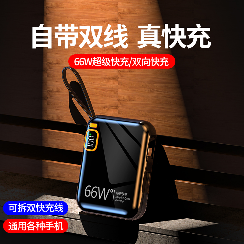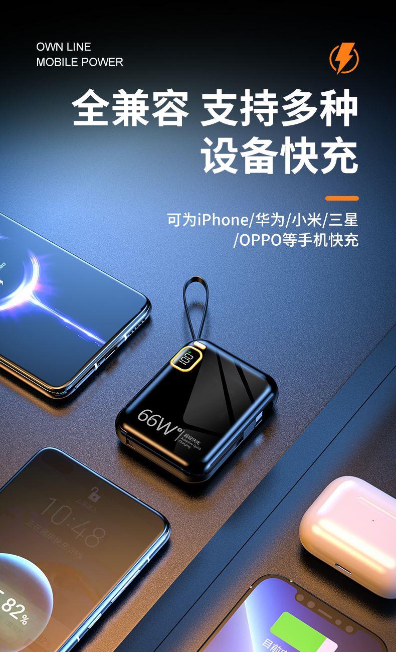 黛悦迷你自带线66w闪充移动电源超级快充充电宝现货秒发带3c