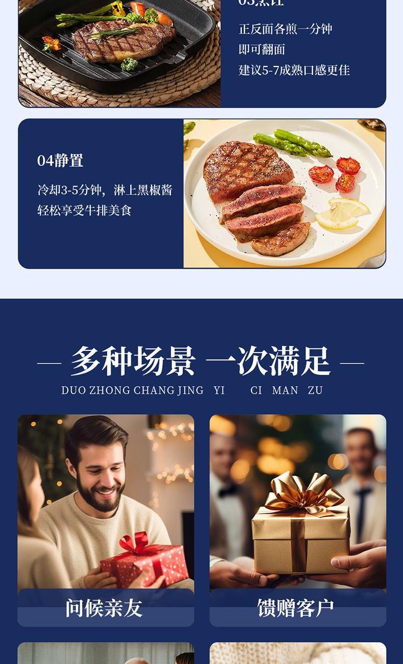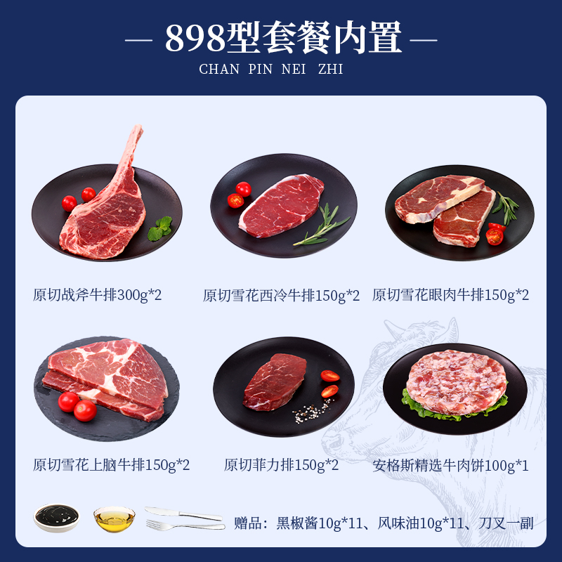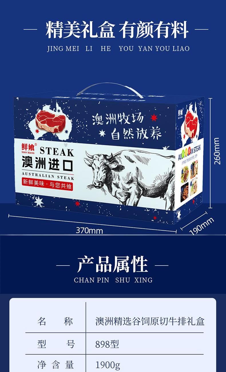 鲜飨澳洲精选谷饲原切牛排礼盒898型1900g