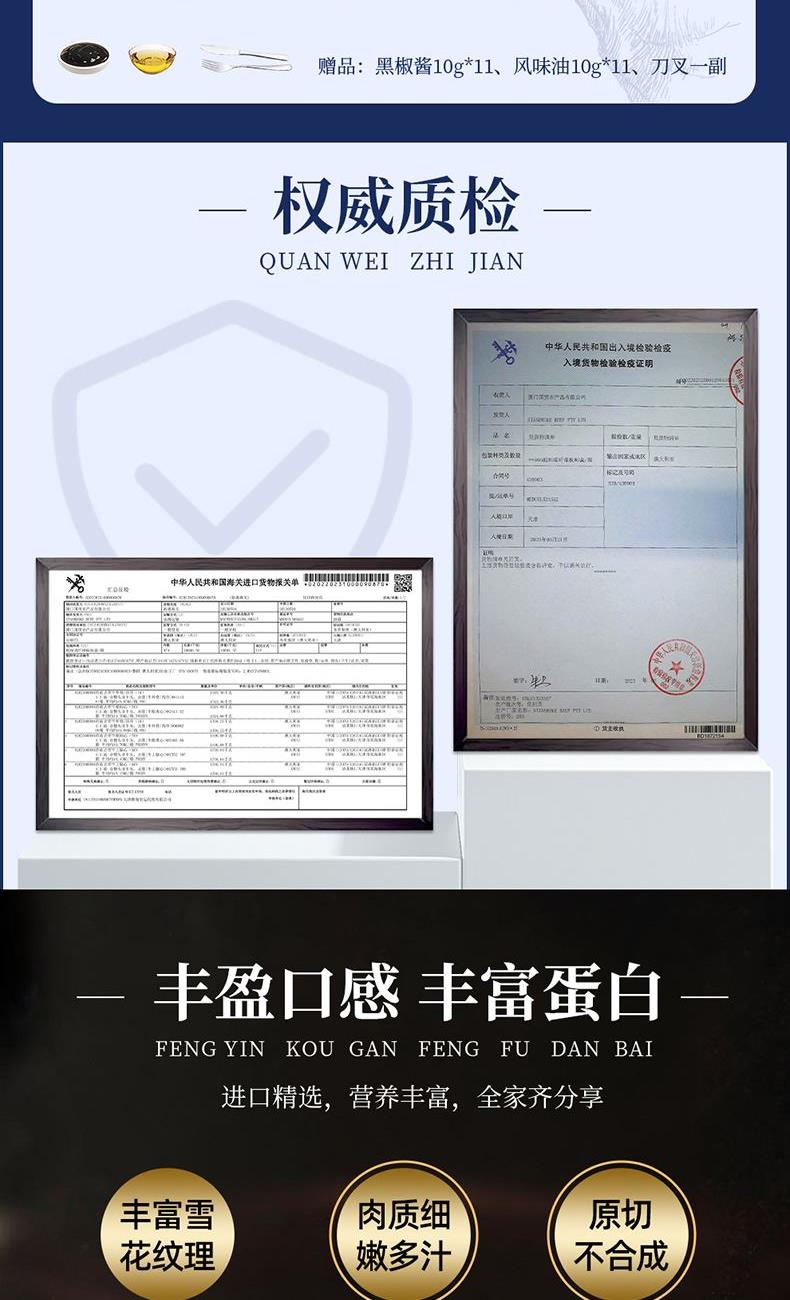 3.纯整切完整部位肉,无拼接 、无卡拉胶、口感适中,满足各年龄段食用需求 。