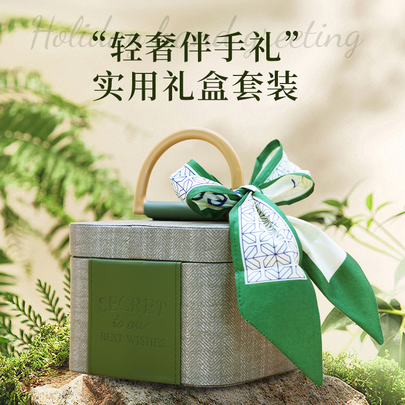 精美礼盒:18*18*13.5 礼盒CIBIO'2护手霜35ml 韩宝莉好事花生香皂120g 香皂花束 欧舒丹洗发水/护发霜:30ml/30ml 蜜桃乌龙茶:3g*5包 美容喷雾补水仪(可做充电宝) 丝巾绑带(图案随机)