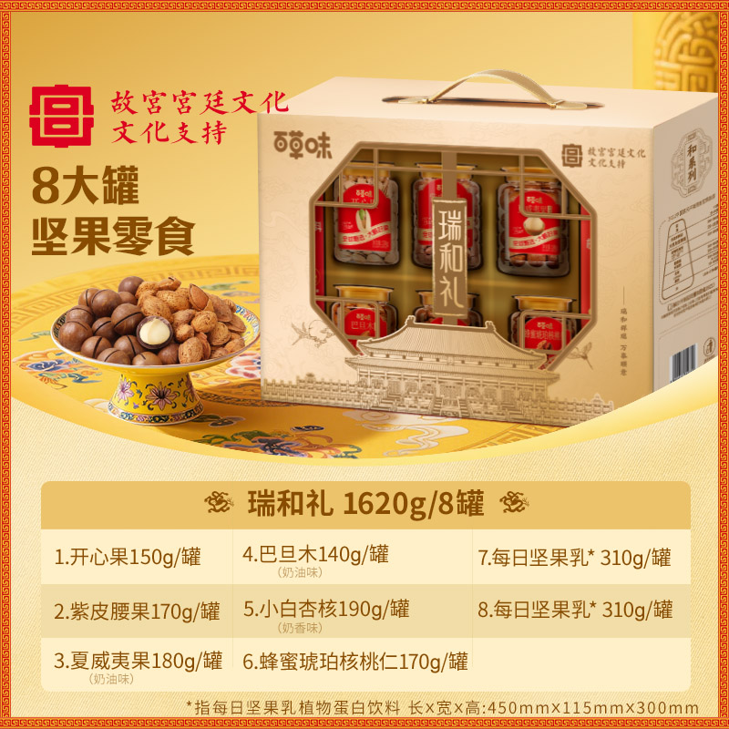 【百草味】罐装坚果零食礼盒-1620g(瑞和礼-开窗)