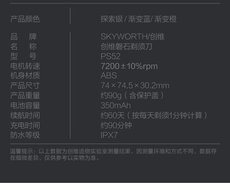 创维SKYWORTH磐石剃须刀渐变蓝PS-52
