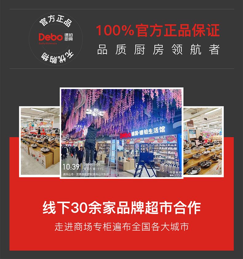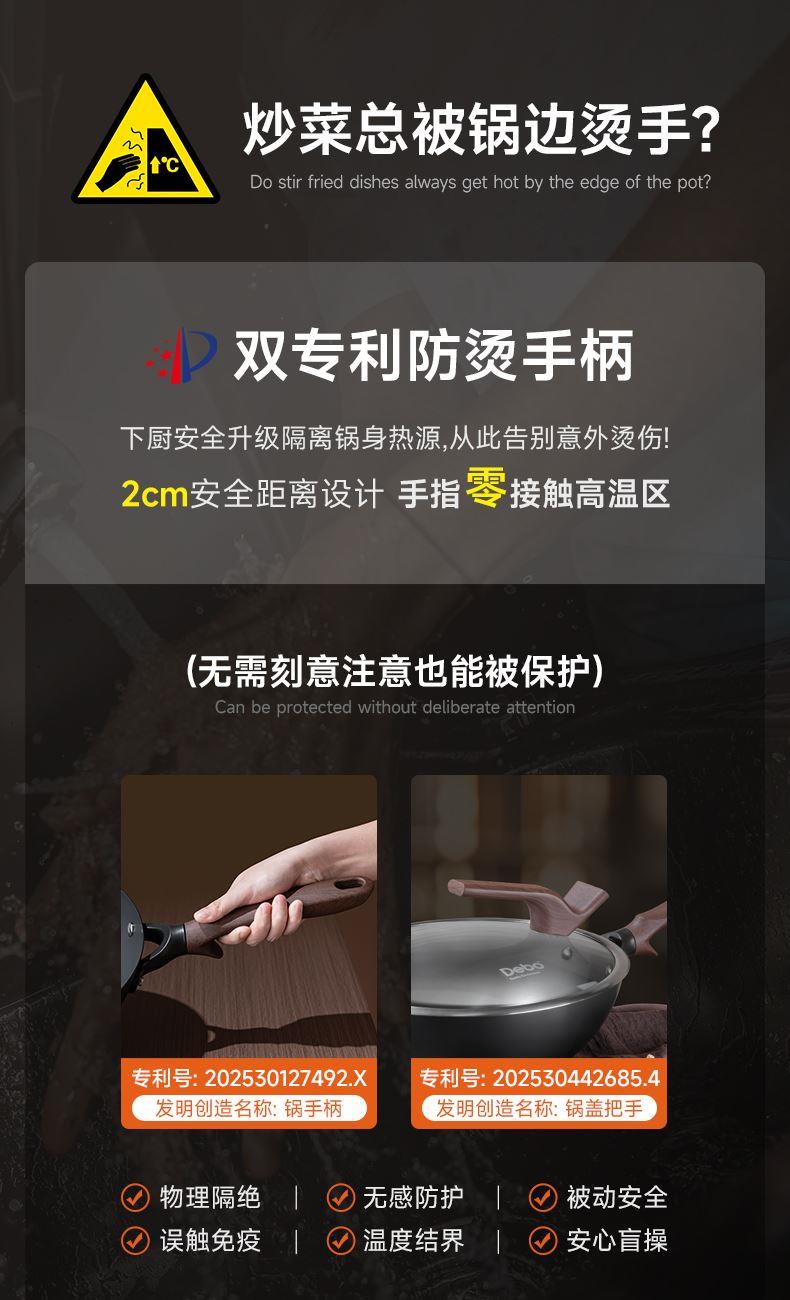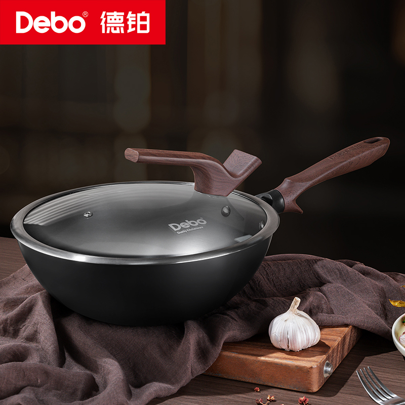 型号:DEP-984 口径:32cm 容量:5L 材质:精铁 包装尺寸:535*135*335mm 配置:锅身*1、玻璃盖*1 1. 采用深层液氮处理工艺,为锅身加上一层紧密的防锈保护屏障,增加耐磨抗腐蚀性; 2. 厚底薄壁,导热均匀,畅快爆炒,轻松翻炒一道菜; 3. 可立式锅盖,能稳稳立在台面,不占地,随手一放方便整洁; 4. 舒适握感手柄,贴合手感设计,握感饱满更舒服; 5. 精工制作,锅体极具质感,精致美观。