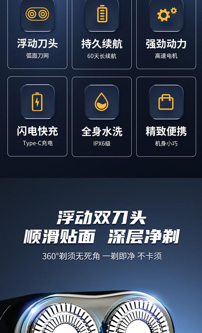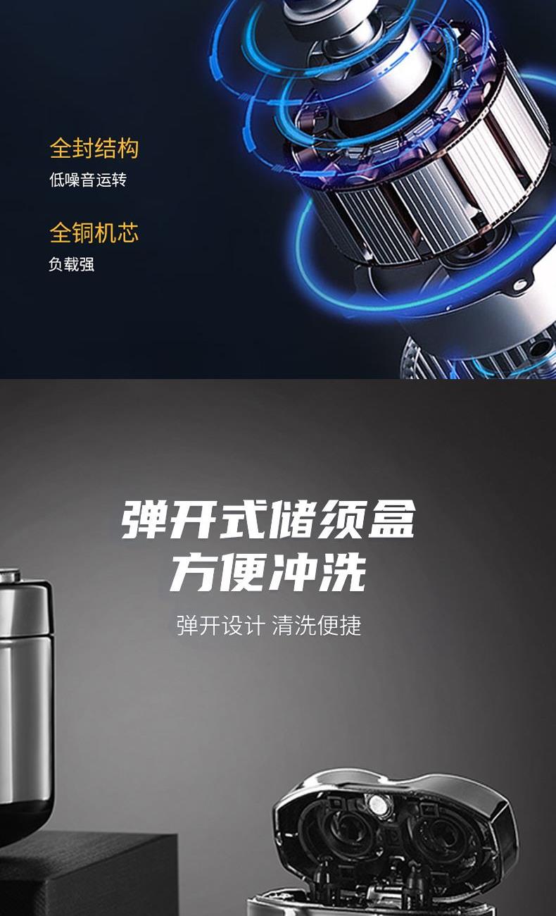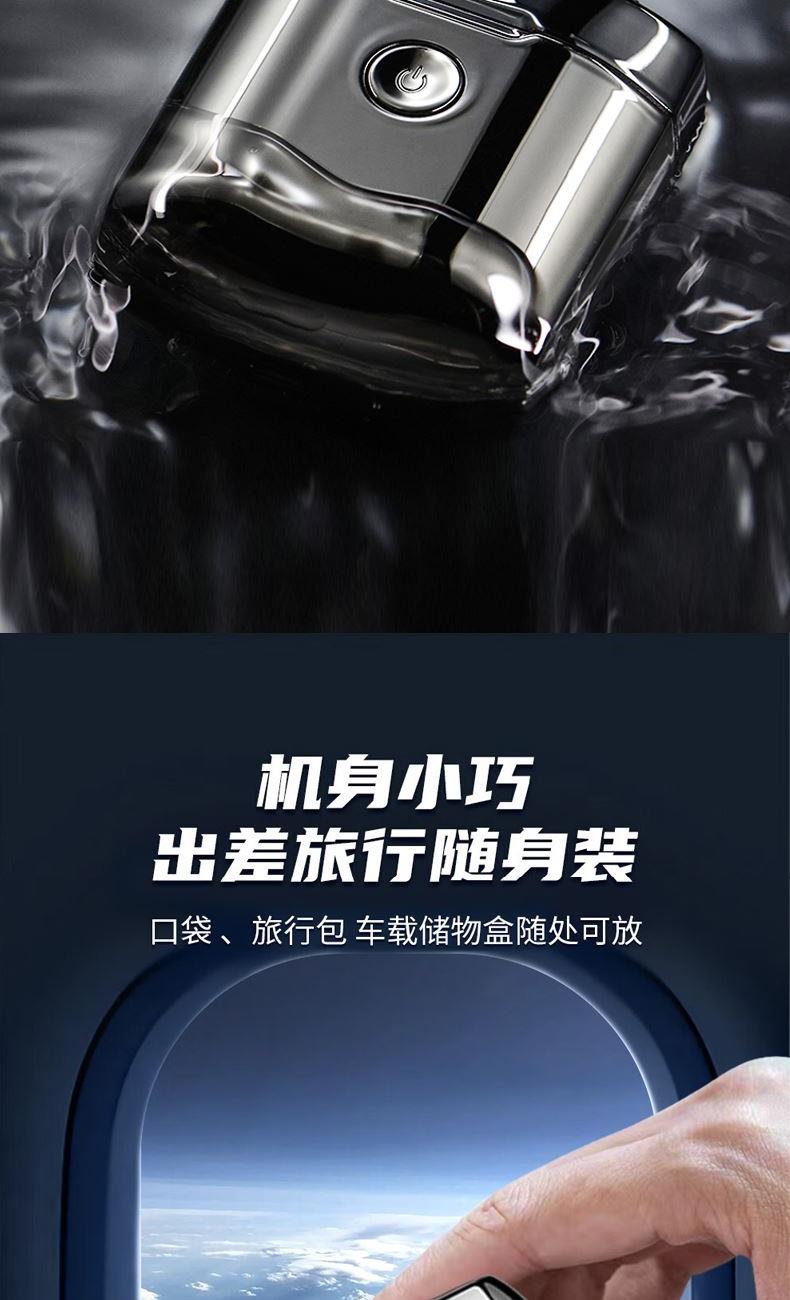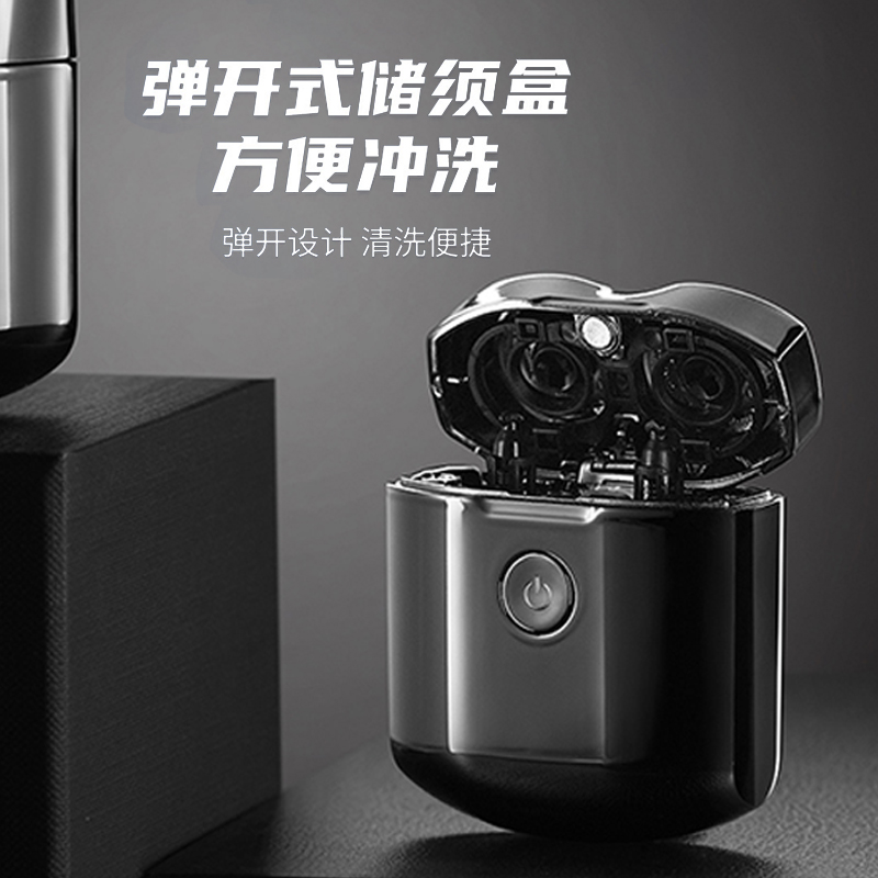 迷你小巧,多场景不受限,出差旅行口袋旅行包随性放 自带收纳盒,充电线,毛刷不怕丢,防磕碰更安心 全身冲洗,清水冲洗即可清洁 弹开式储须盒,一键弹开设计 双环贴面刀网,增加剃须面积,提高剃须效率 45分钟续航,无需频繁充电