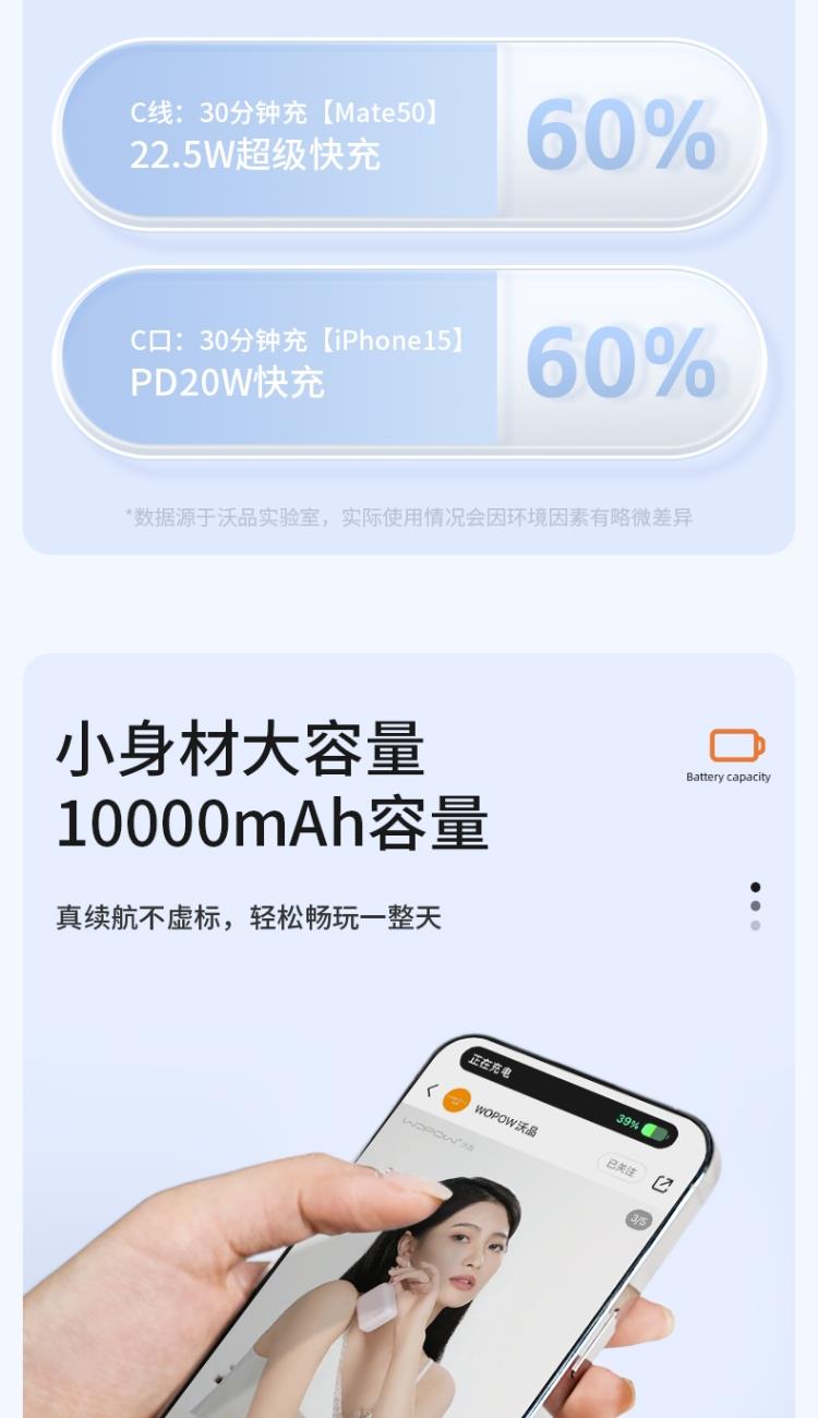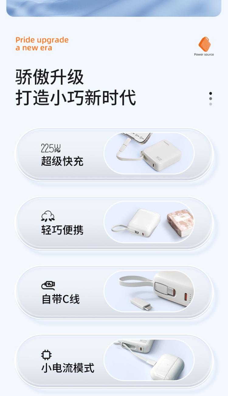 10000mAh超mini,轻薄手感,只手可握,轻巧便携