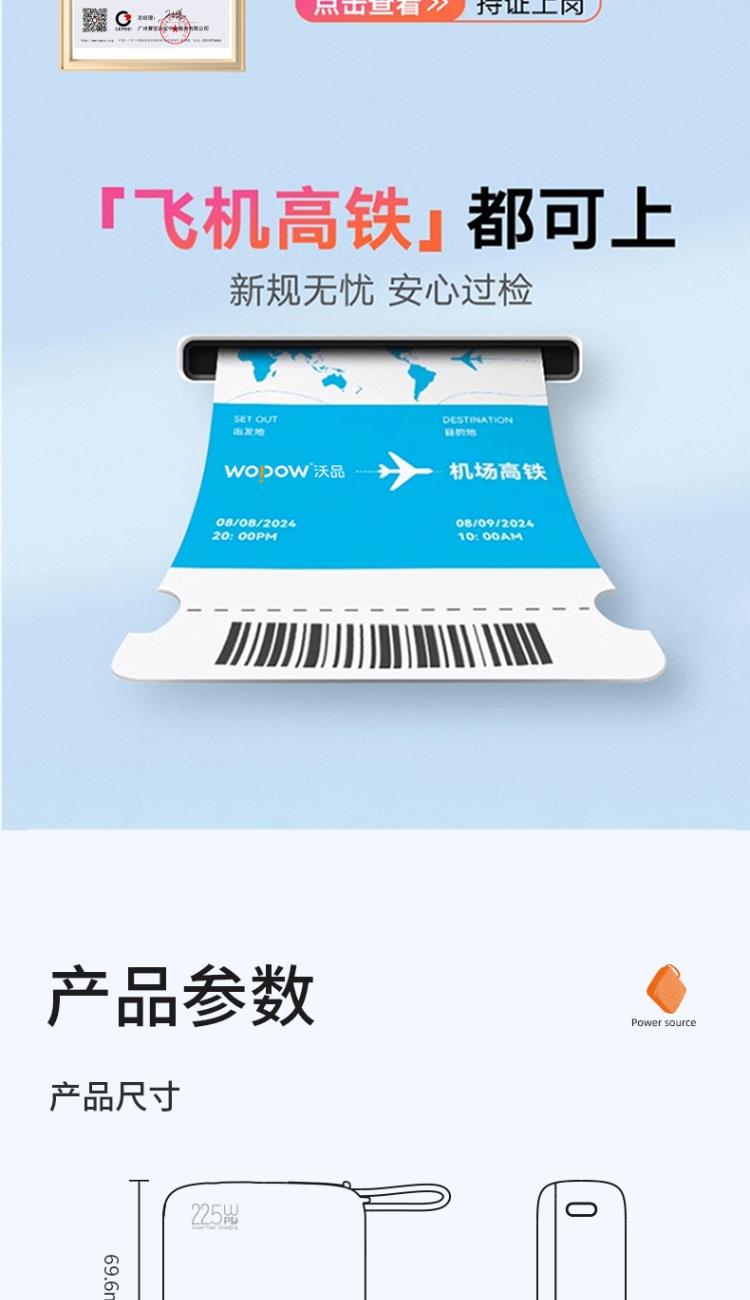 符合移动电源新国标标准,94V0级防火外壳,登机安全无忧