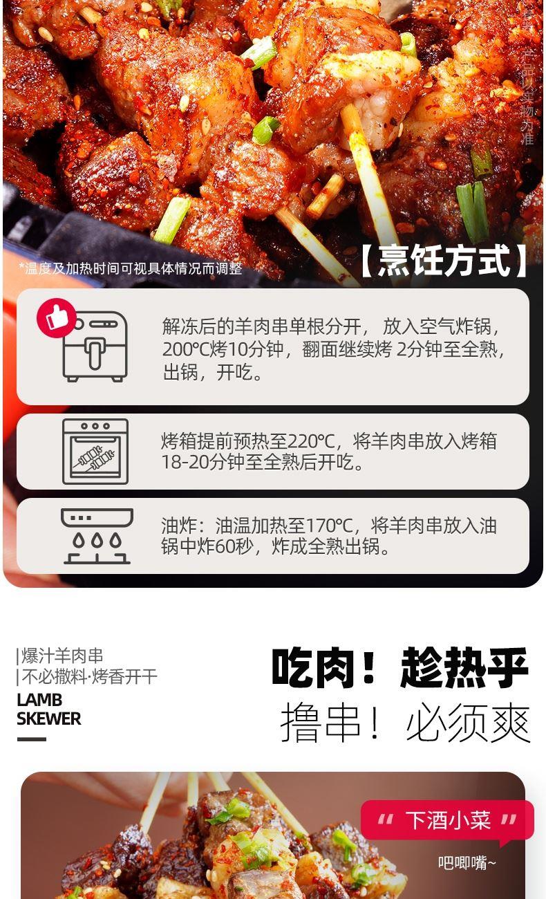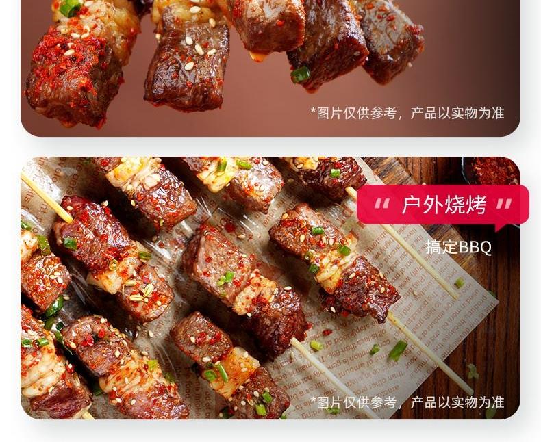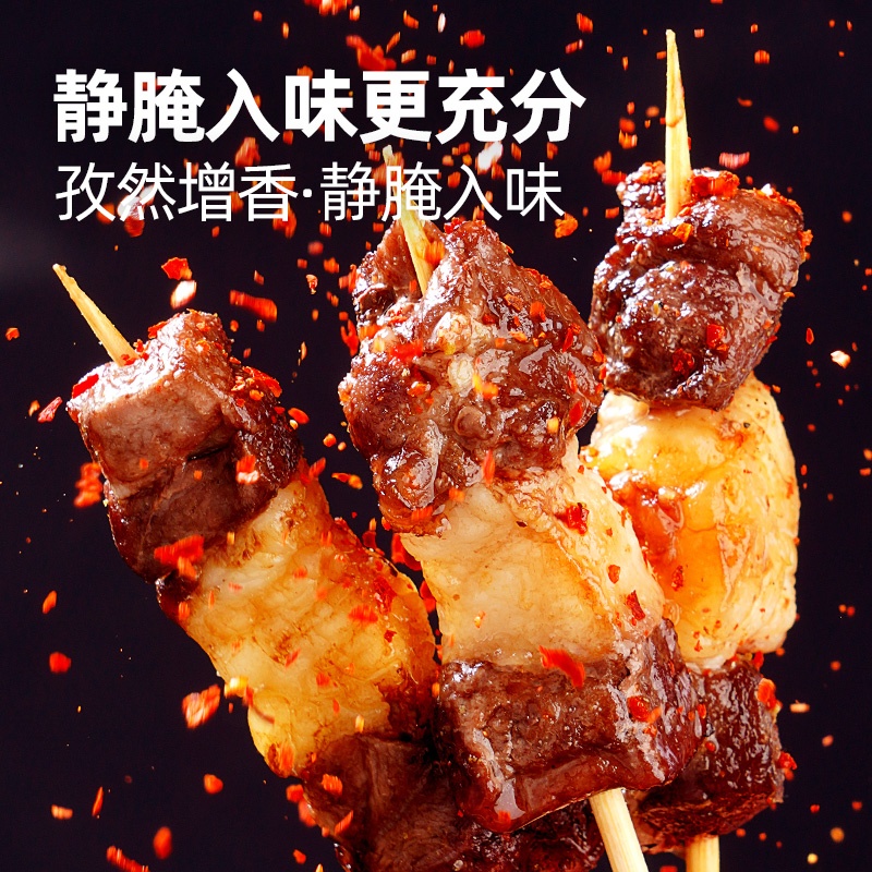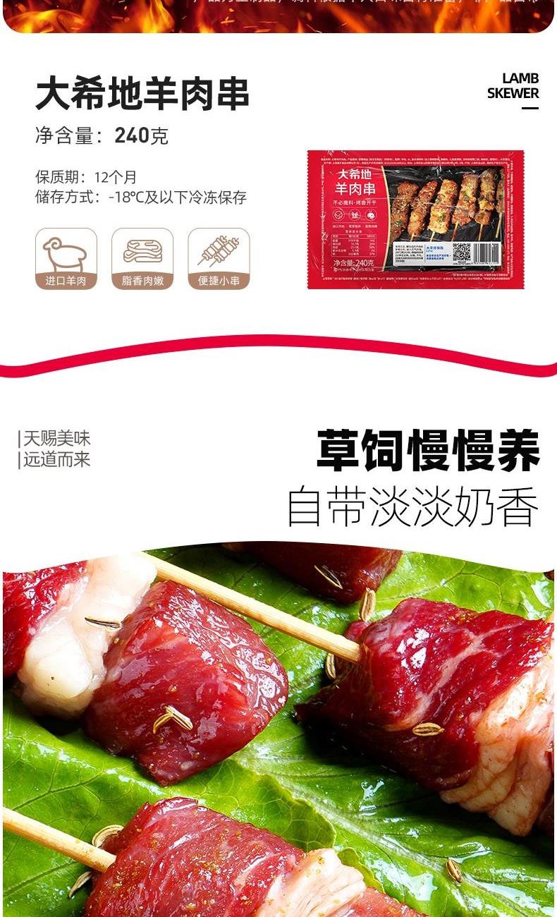 产品参数配置 羊肉串:240g / 袋,共 5 袋 产品卖点说明 优选羊肉去膻留鲜,肉质鲜嫩;预制串制,解冻即烤,操作便捷。 5 袋 240g 足量装,适配家庭烧烤、露营等多人场景,分享畅快。