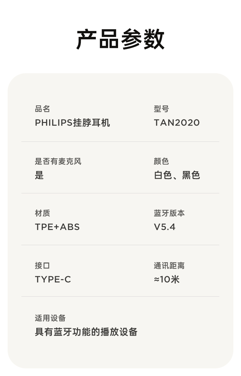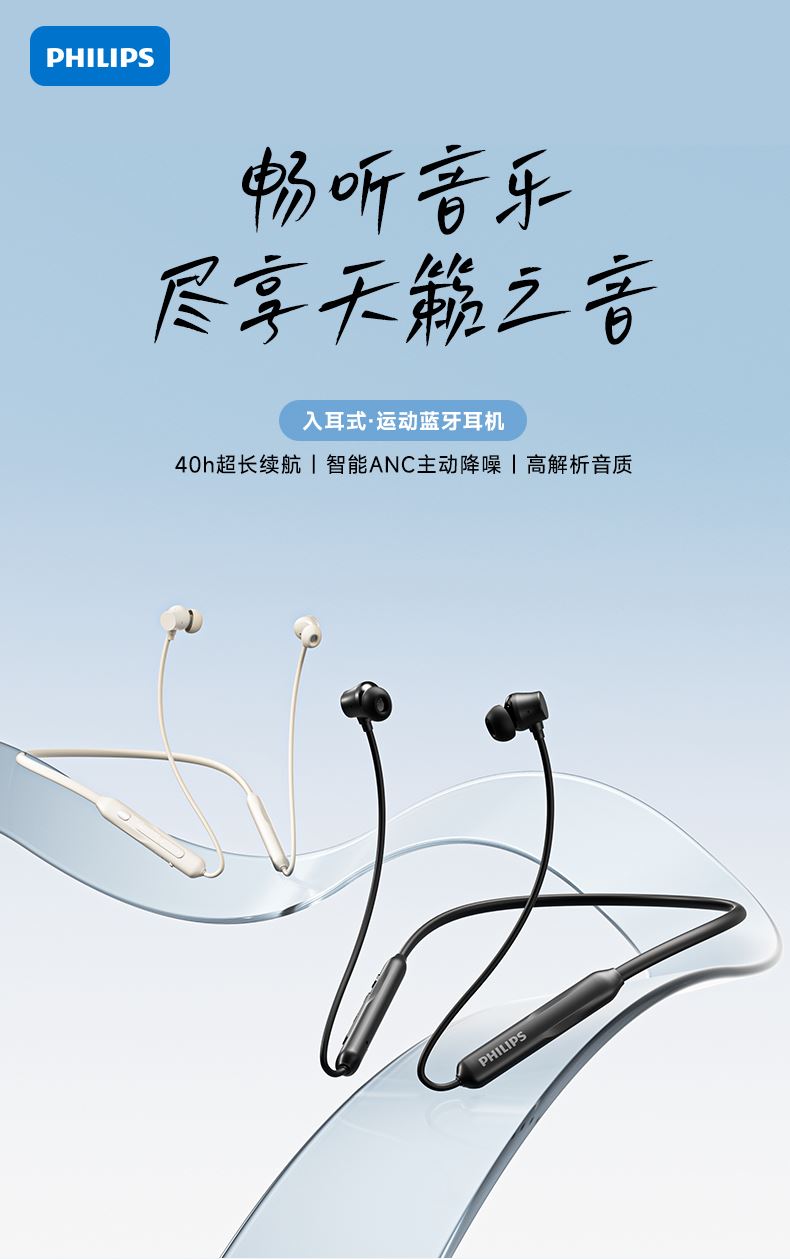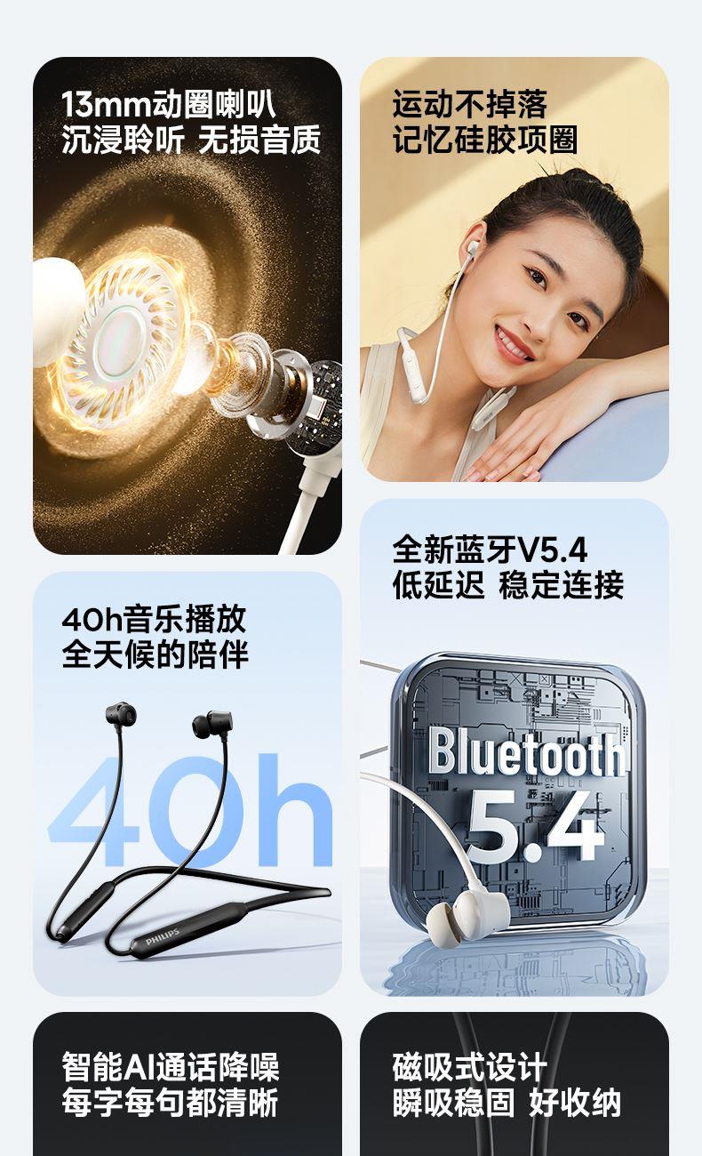 飞利浦磁吸挂脖式无线蓝牙耳机TAN2020