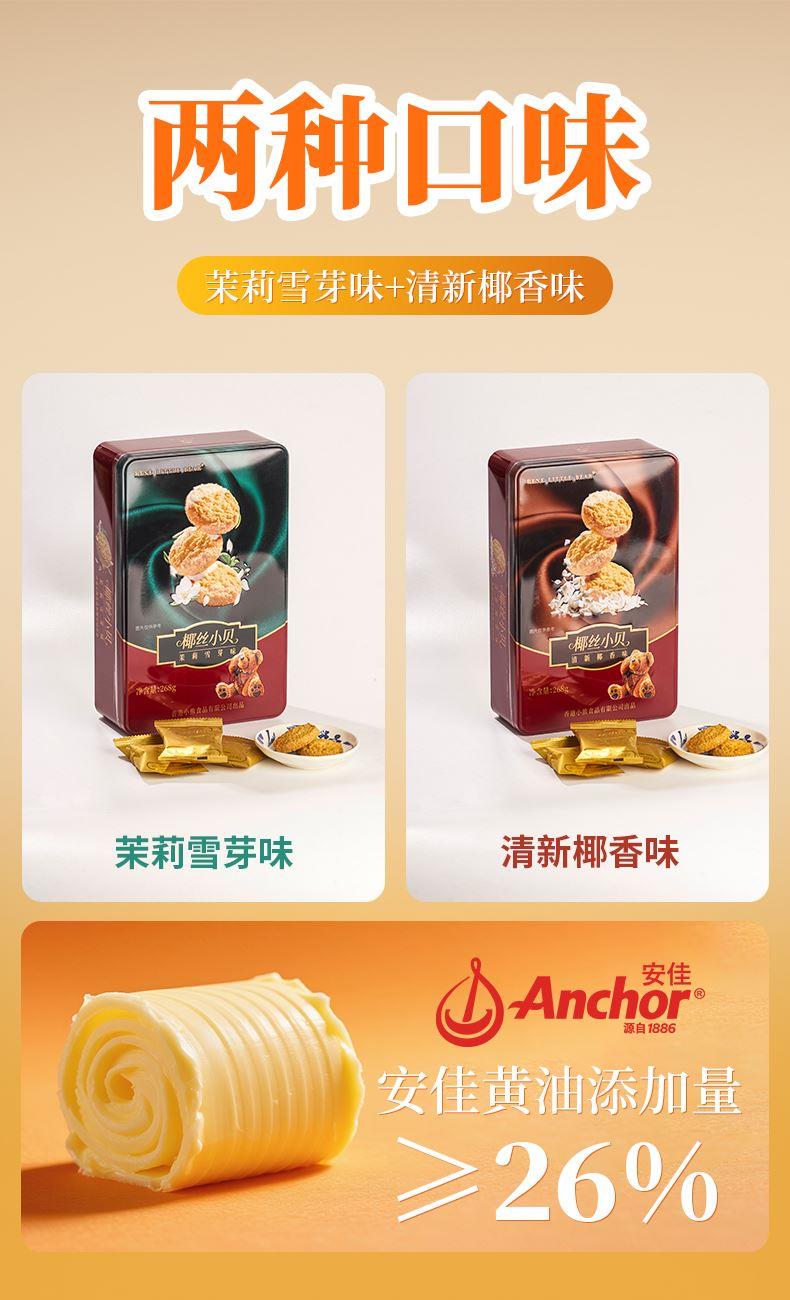 (茉莉雪芽味)+(清新椰香味) 菲律宾进口椰丝 添加量>28%,富含膳食纤维,一口酥香浓郁