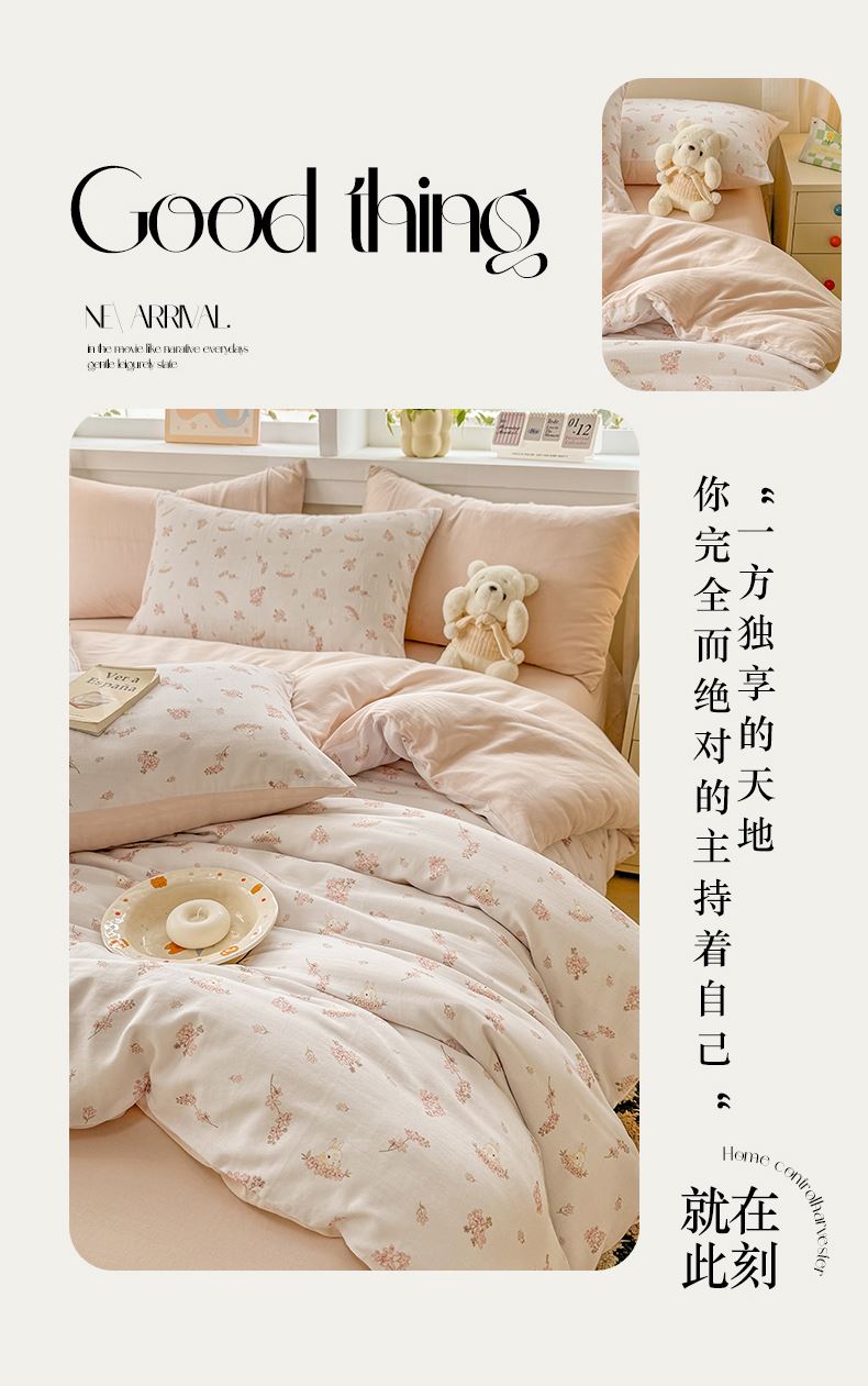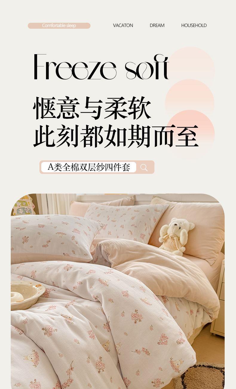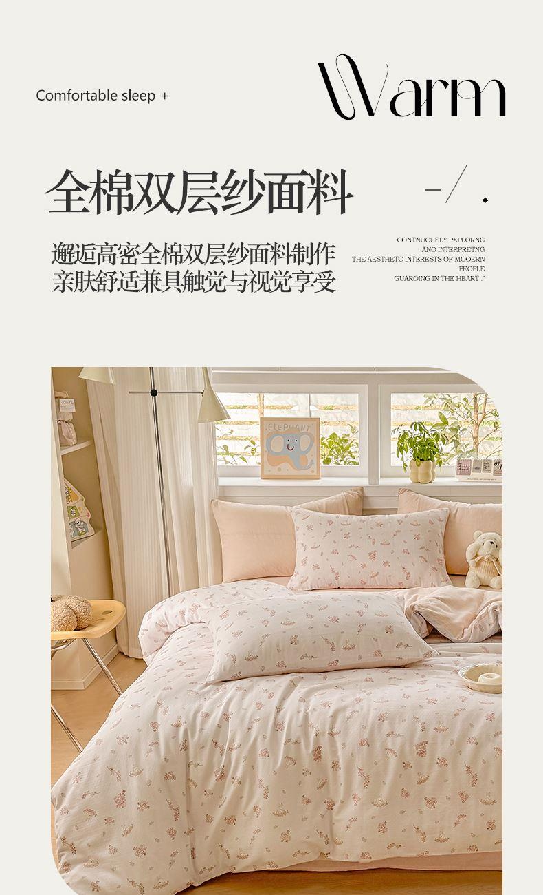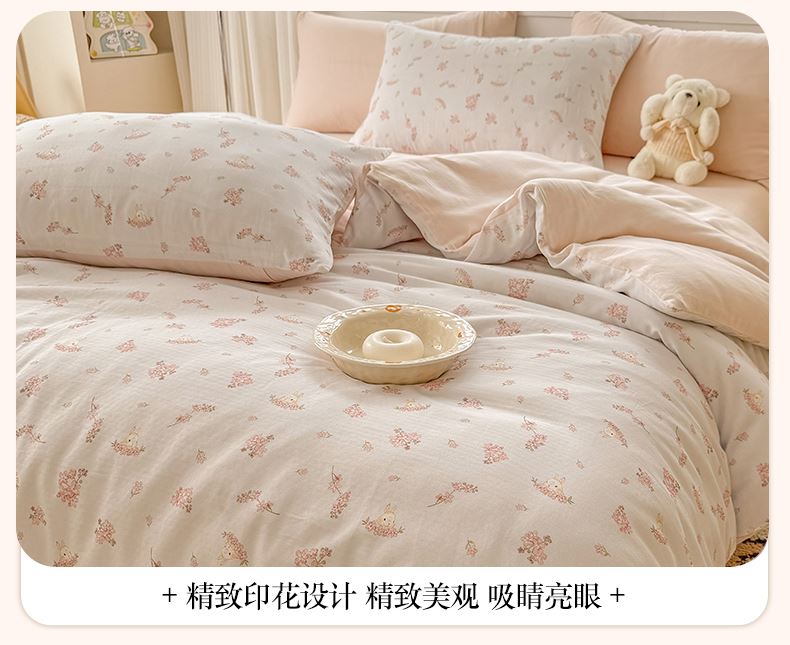 百丽安娜双层纱轻氧全棉数码印花四件套-初心