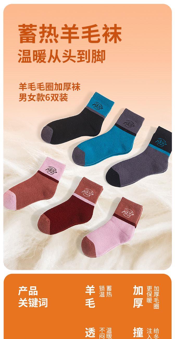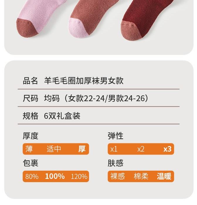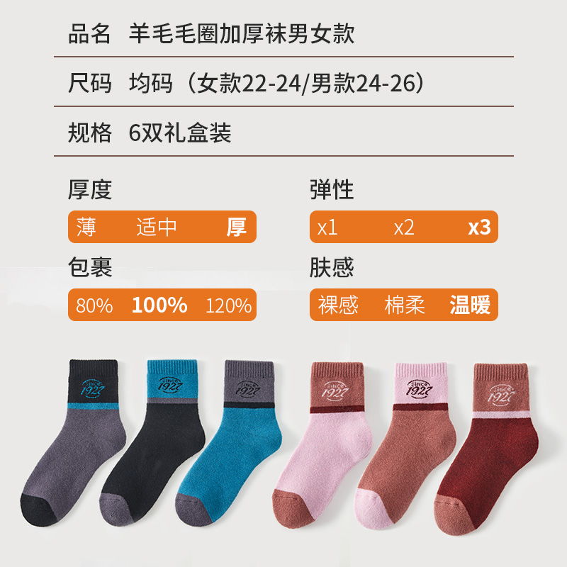 恒源祥羊毛毛圈加厚袜男女款6双装HYX068WZ