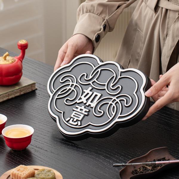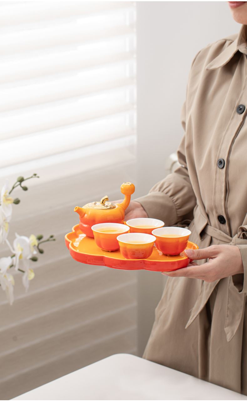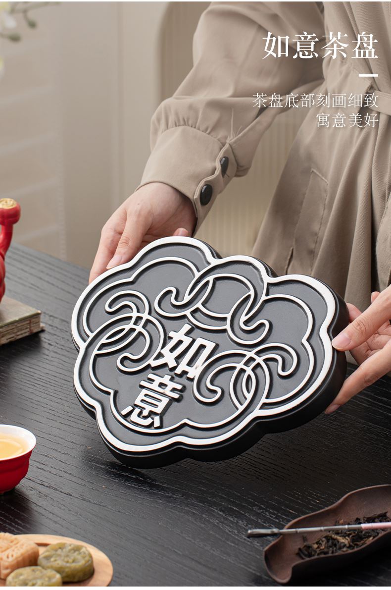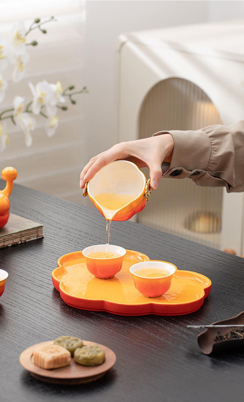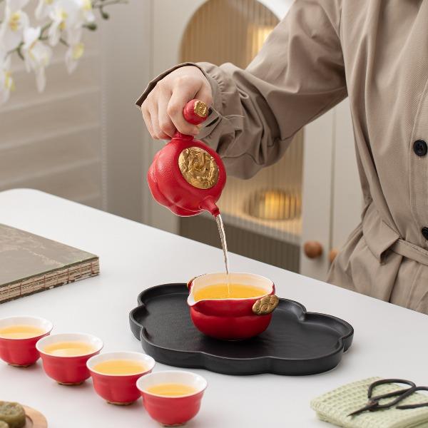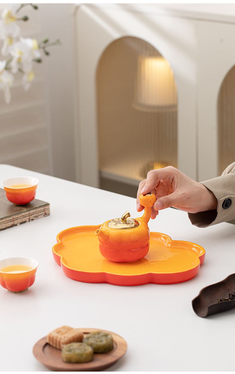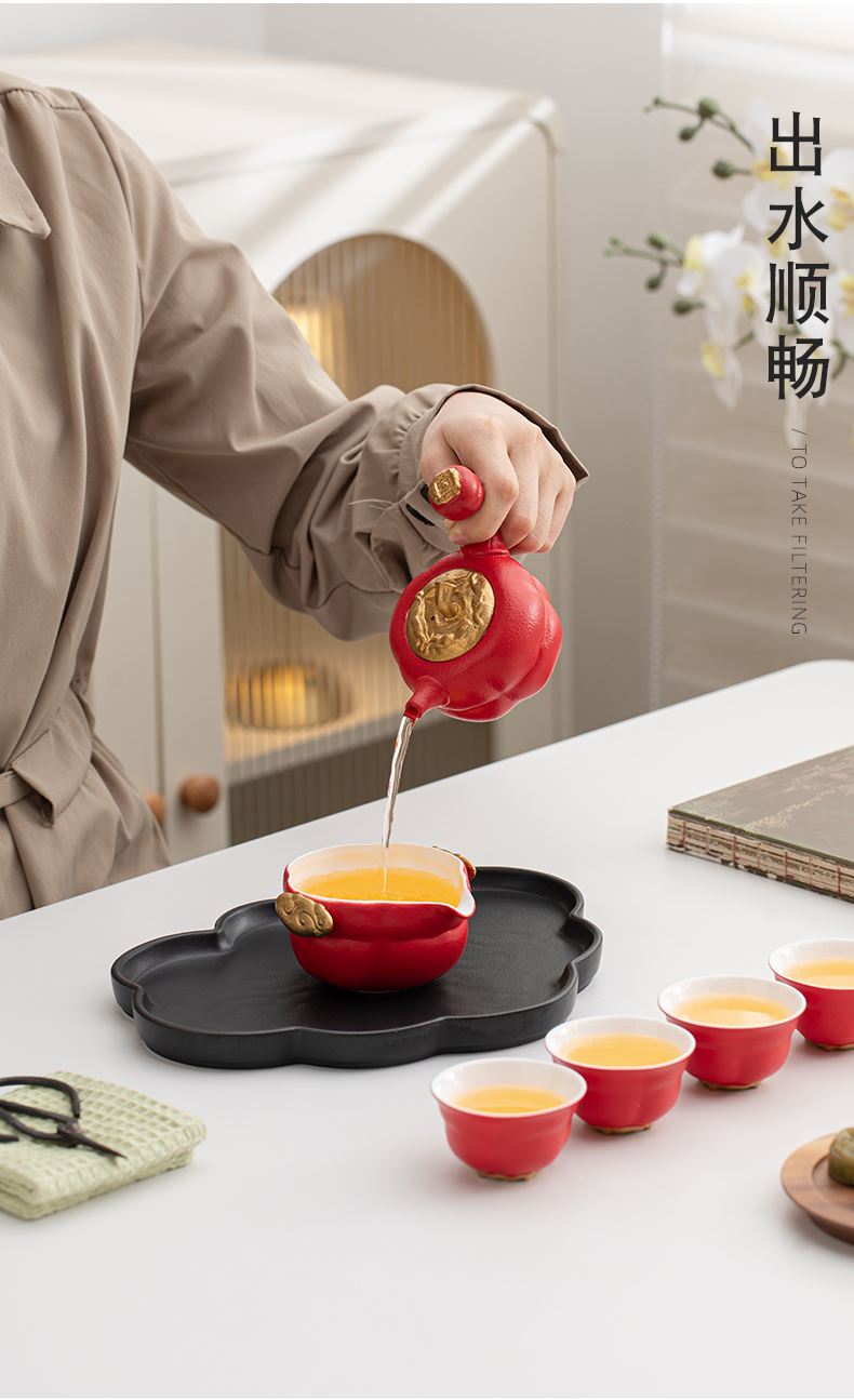 壶:11*8.6厘米150ml 茶海:9.8*5厘米170ml 品茗杯:6.2*4厘米50ml 茶盘:25*19*1.8厘米 礼盒:30*23*12厘米 造型形象生动,寓意美好,天然矿物釉,高温烧制无铅镉 ,瓷胎密实不吸茶香,久用更显韵味 。