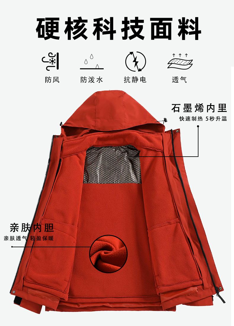 JC-4438#石墨烯摇粒绒三合一冲锋衣