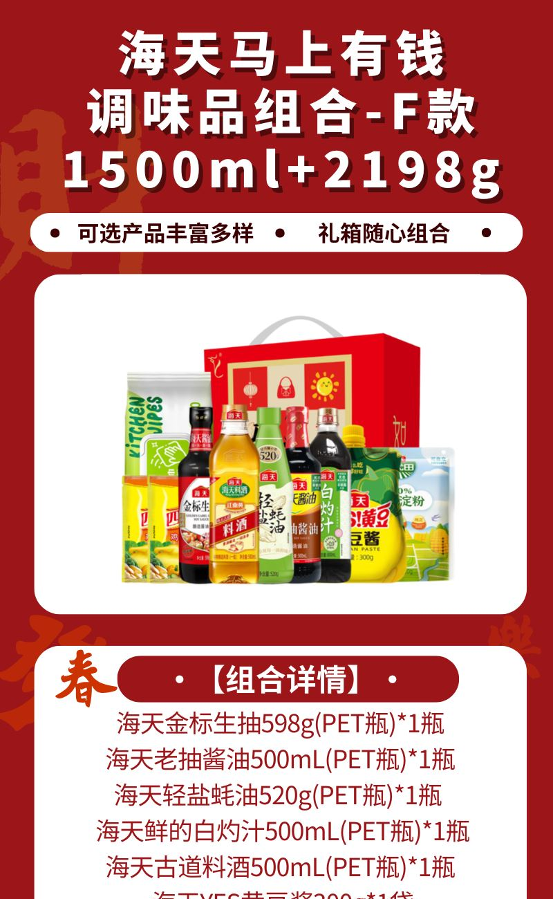 海天马上有钱调味品组合-F款1500ml+2198g