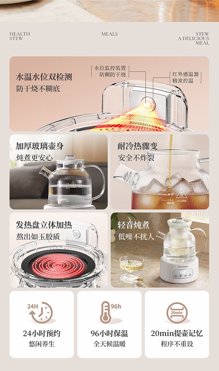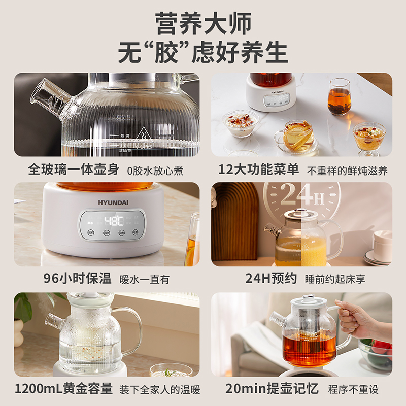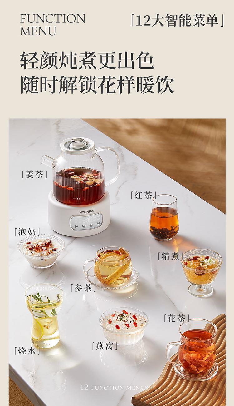 燕窝/泡奶/烧水/花茶/保温/精煮/果茶/姜茶/预约,解锁花样暖饮;