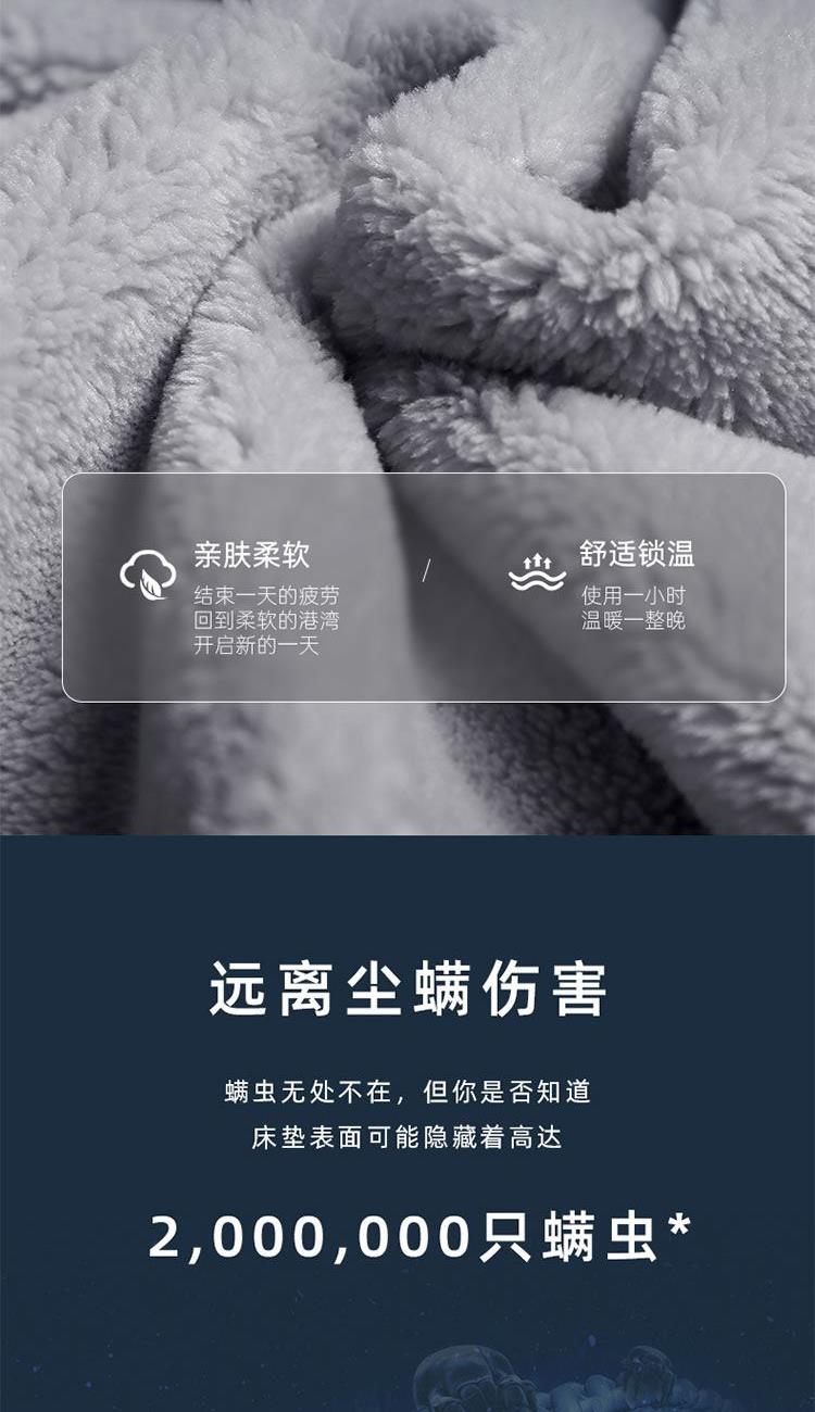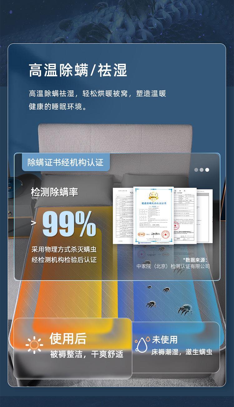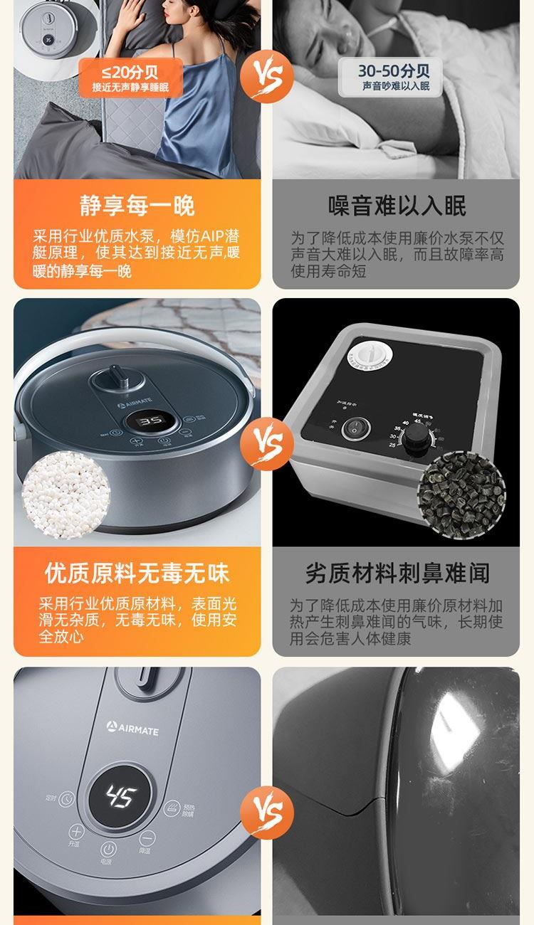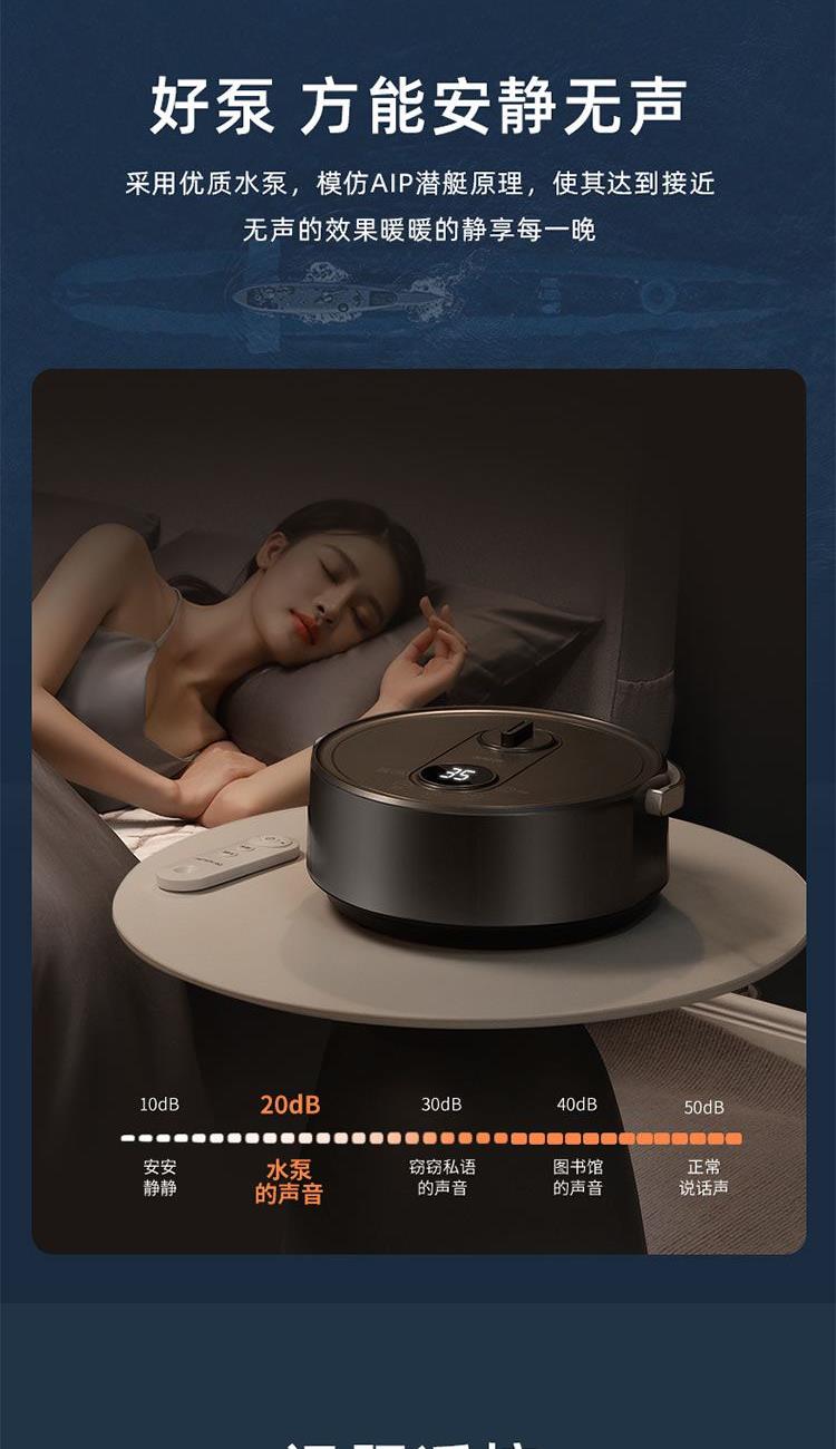 额定功率:250W 额定电压:220V 额定频率:50Hz 水箱容量:0.6L 档位温度:10~65℃ 净 重 :4.5Kg 毛 重 :4.8Kg 包装尺寸:505x255x405mm 1、温泉模式,恒温加热不干燥 2、水循环加热,水润保湿好睡眠 3、升级硅胶软管,全封闭加热不漏水 4、五大防护系统,重重防护安心入睡 5、水电分离,毯体部分不带元器件 6、婴孕可用,10-65°C自由调节 7、远距遥控,不用远离温暖被窝 8、温馨小夜灯,黑暗也有陪伴