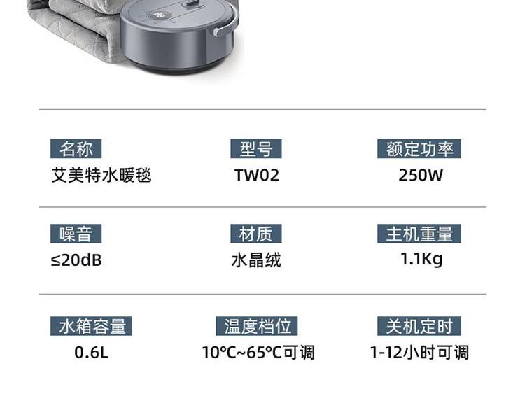 艾美特夜灯款水暖毯TW02