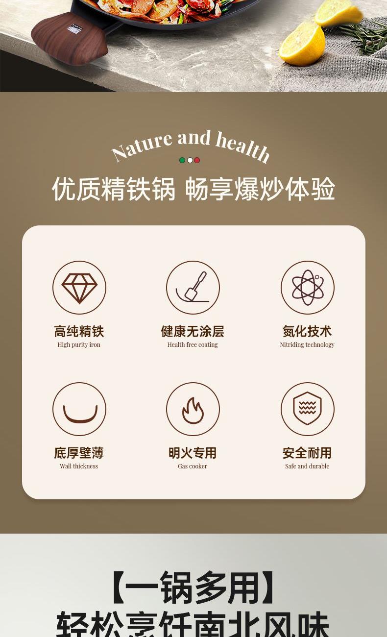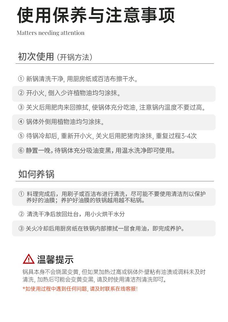 规格:30cm 材质:精铁 入箱:4个/箱 单个尺寸:520*350*145 1、含铁量99.6%,无涂层更健康 2、精工氮化工艺、不易锈 3、双重高温炽炼、坚硬耐磨、锈不了 4、螺纹锅底防滑聚火节能。
