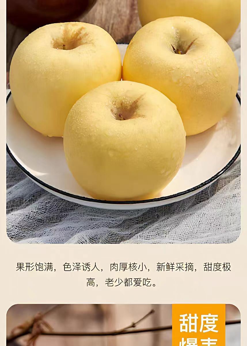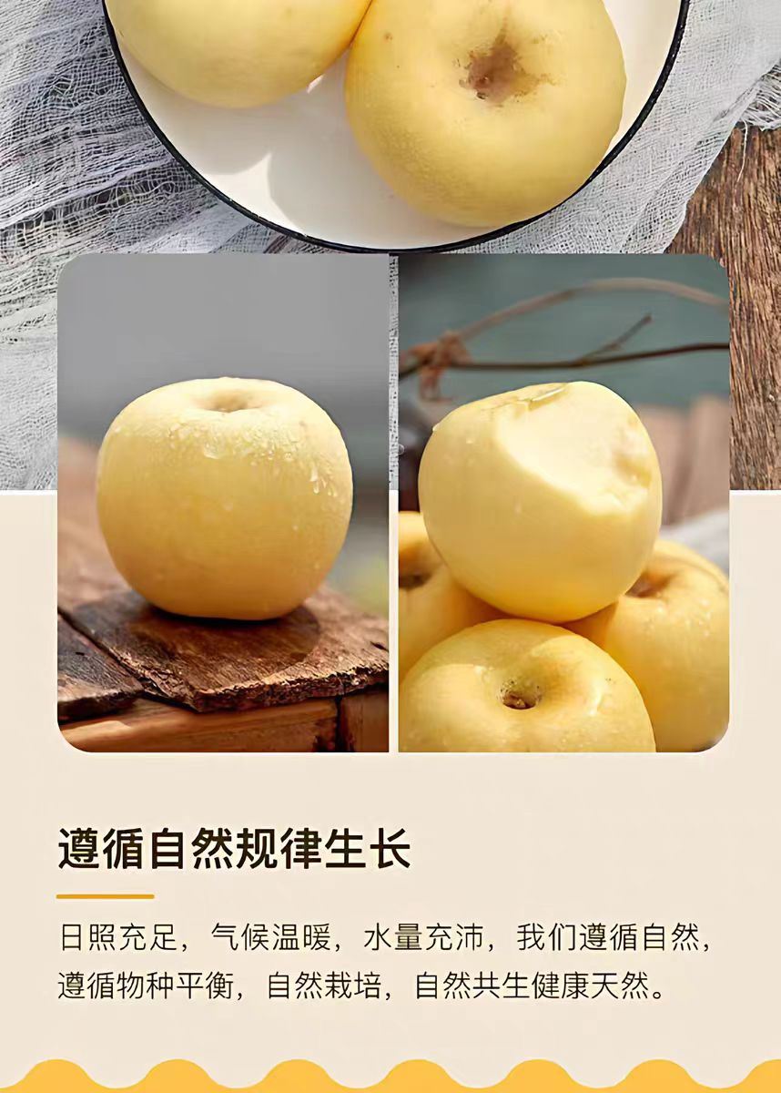 产地:⼭东 规格:8⽄ 上市时间:10⽉ 特点:果⽪呈奶⻩⾊,果⾁奶⽩⾊ 营养:富含维⽣素、矿物质 储存:冷藏