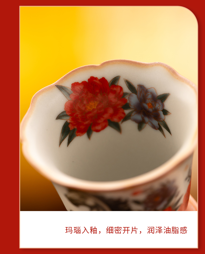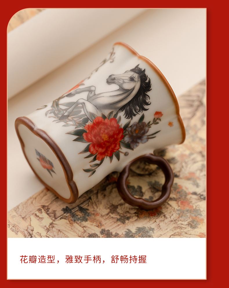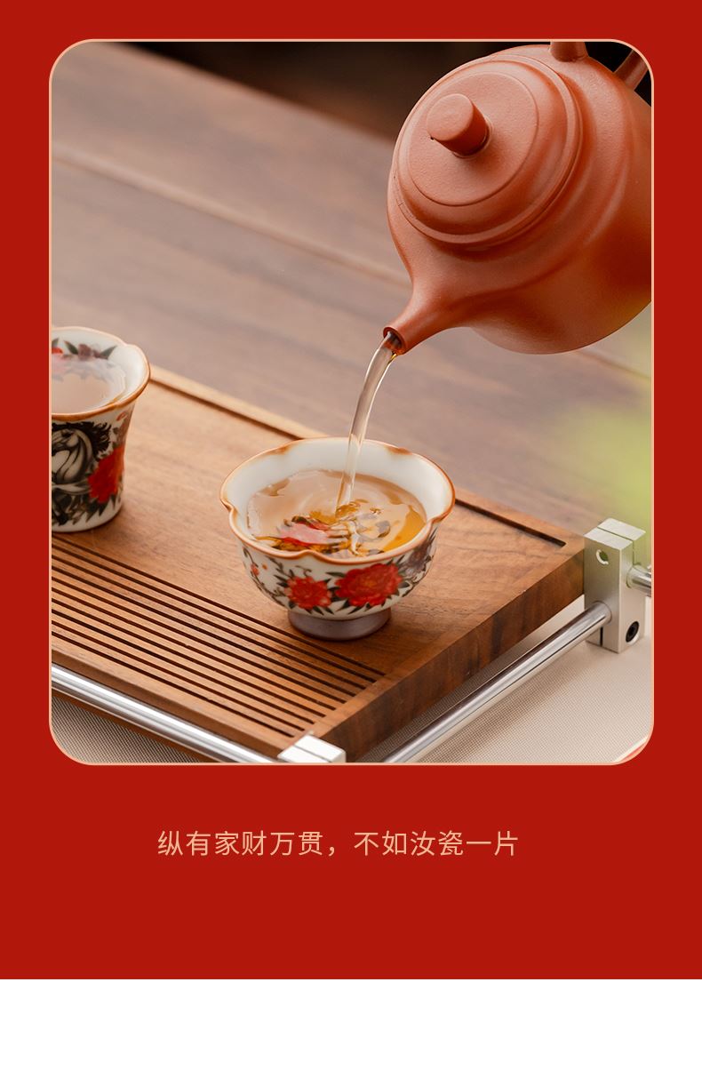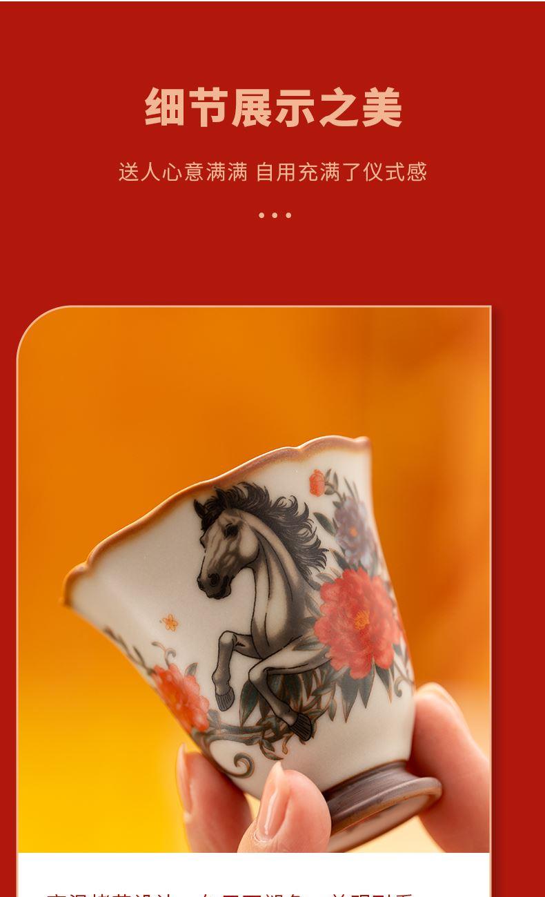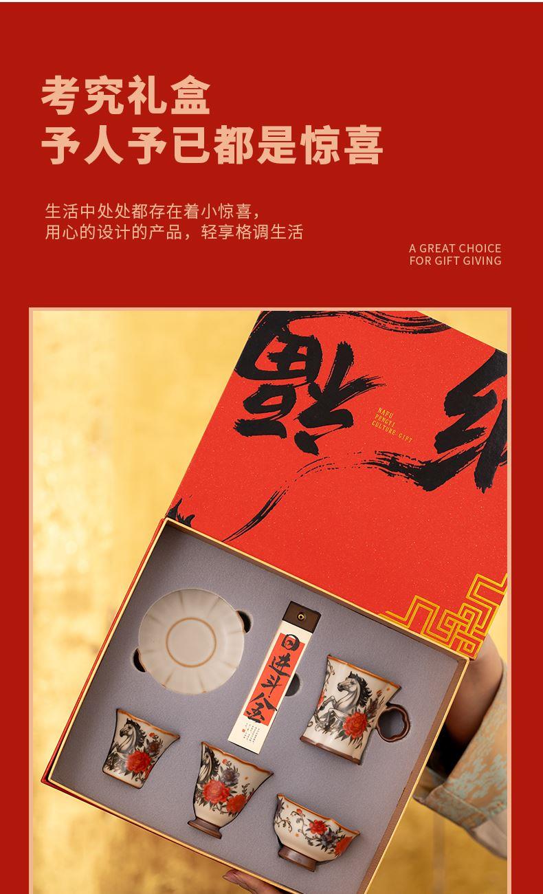 配 制:1手柄杯 1闻香杯 1小杯 1碗 1香盘 1线香 1收藏证书 1礼盒 手提袋 材质:汝黄瓷 檀香 规格:手柄杯 6*9cm 闻香杯6.5*6.3cm 小杯6*5.3cm 碗7.6*4.4cm 香盘9.3*1.8cm 容量:手柄杯70ml 推荐说明:马上有钱,马到成功杯子套装,配日进斗金线香,带香插莲花香盘。亚黄汝瓷,玛瑙入釉,蝉翼开片,内外皆有花面,家有千财万贯,不如汝窑一片。技术新品。画面堆料技术,富有立体浮雕质感,真实感强。杯身开片,可养瓷。