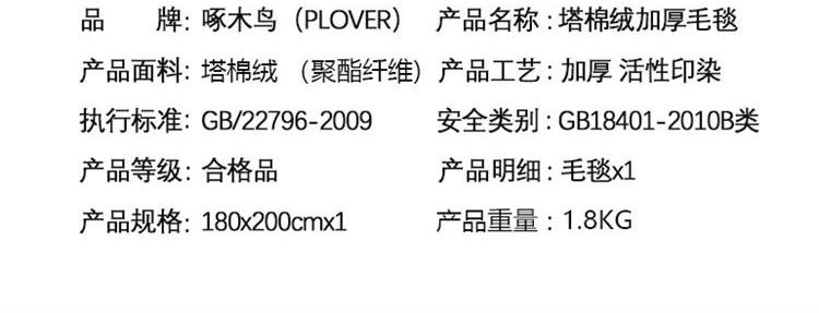 啄木鸟塔棉绒加厚毛毯(180*200cm)