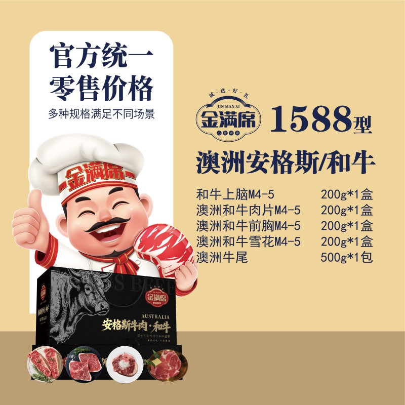 1.和牛上脑M4-5 200g 2.澳洲和牛肉片M4-5 200g 3.澳洲和牛前胸M4-5 200g 4.澳洲和牛雪花M4-5 200g 5.澳洲和牛尾500g