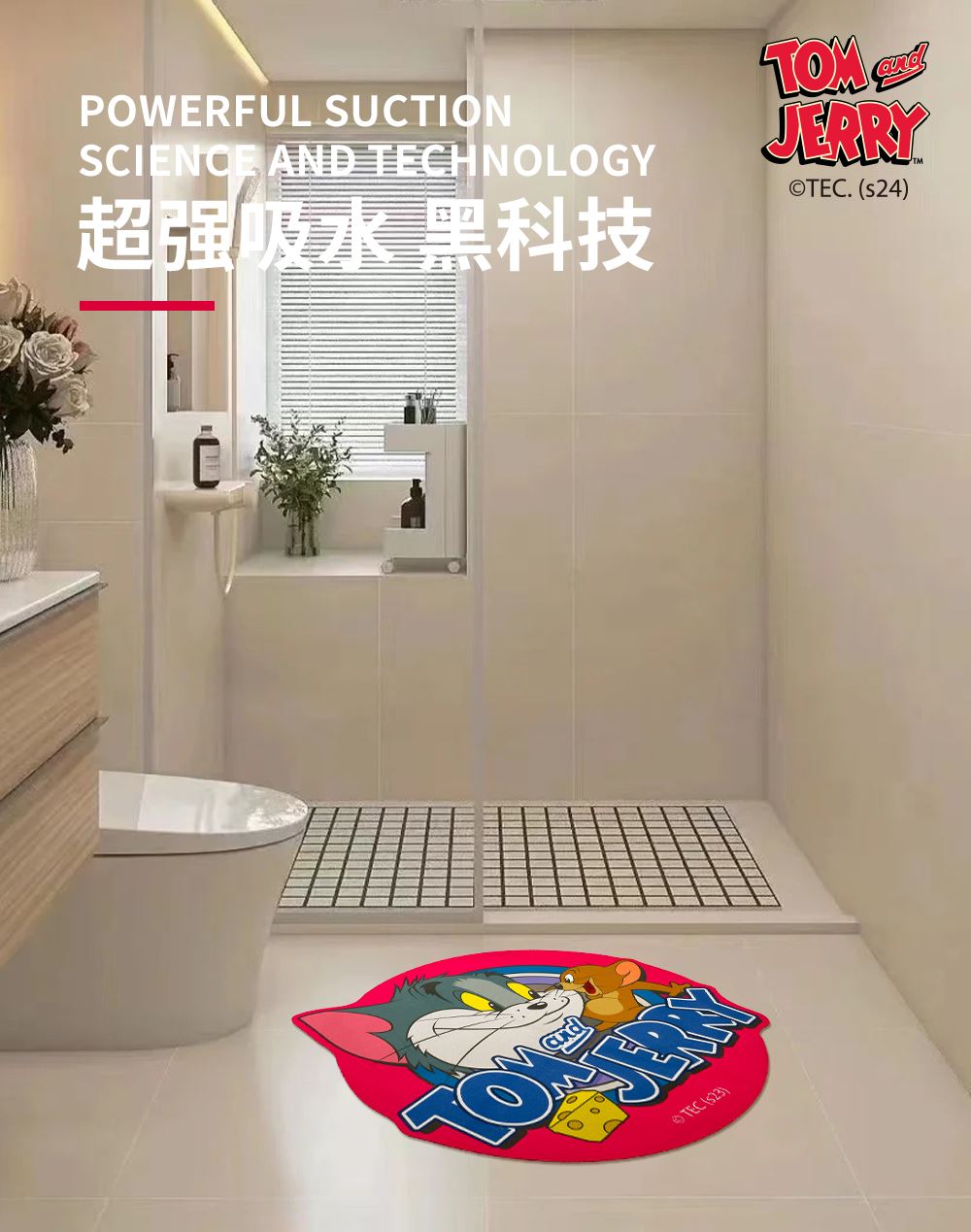 Tomandjerry浴室地垫-伙伴卡通硅胶藻泥吸水地垫防滑
