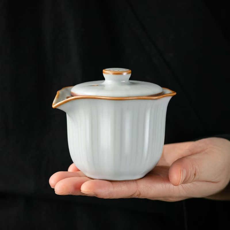 鹏翼亚黄汝窑浮雕快客杯