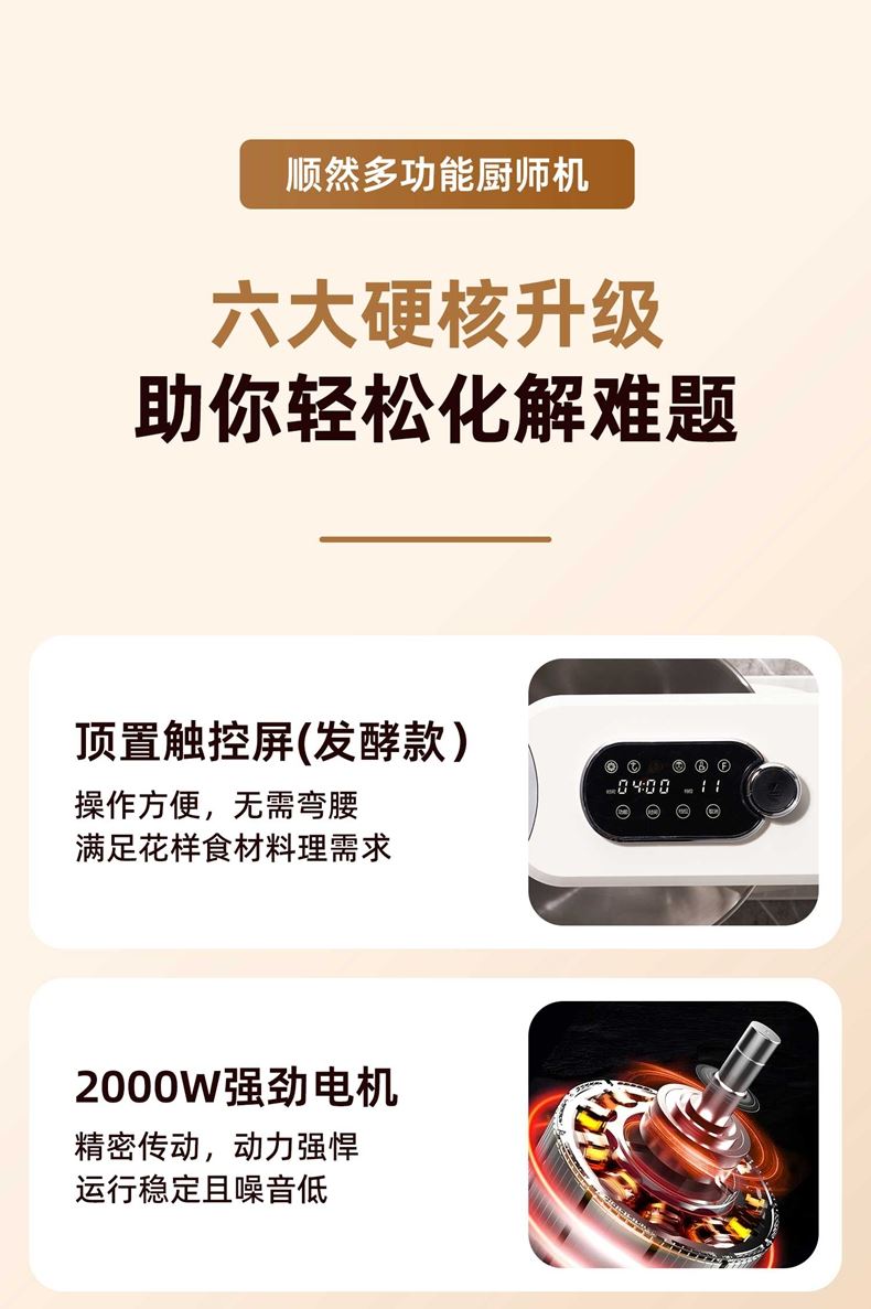 顺然SUNATUR定时发酵厨师机触控标配款SR-3008B