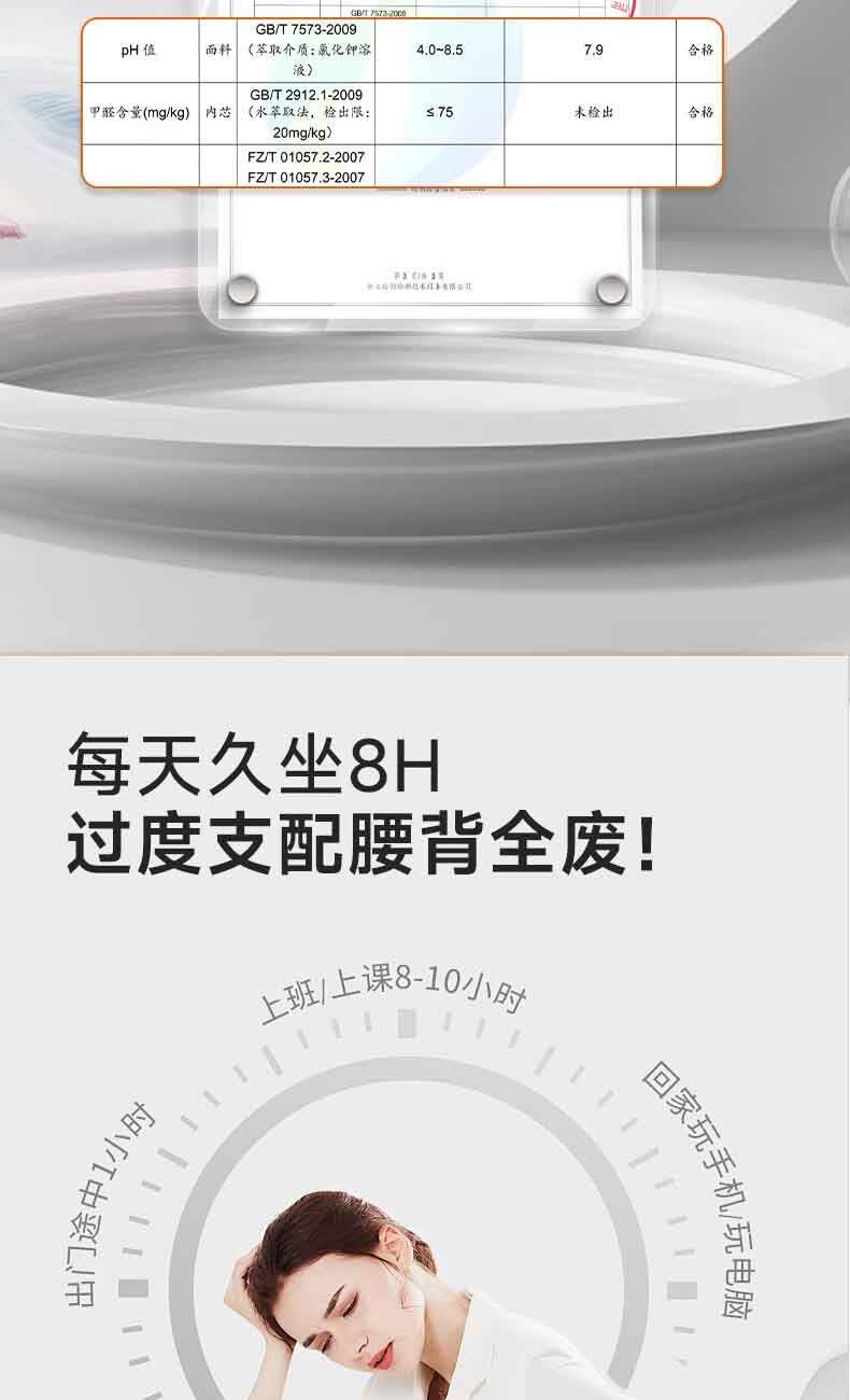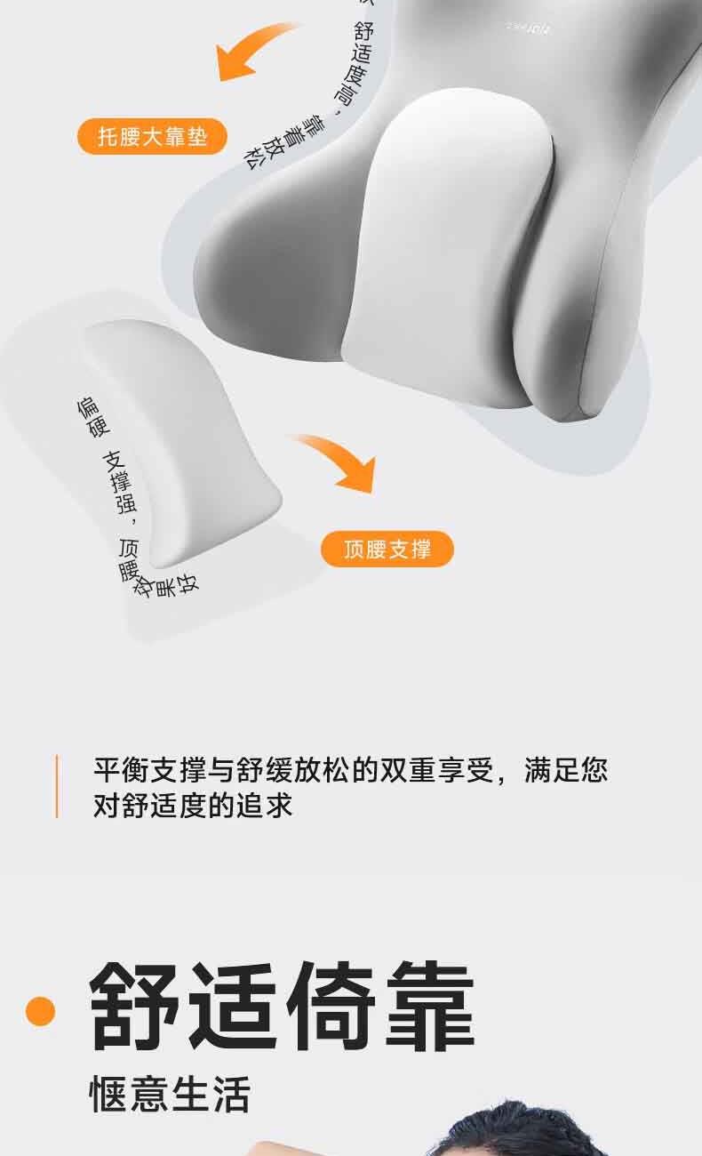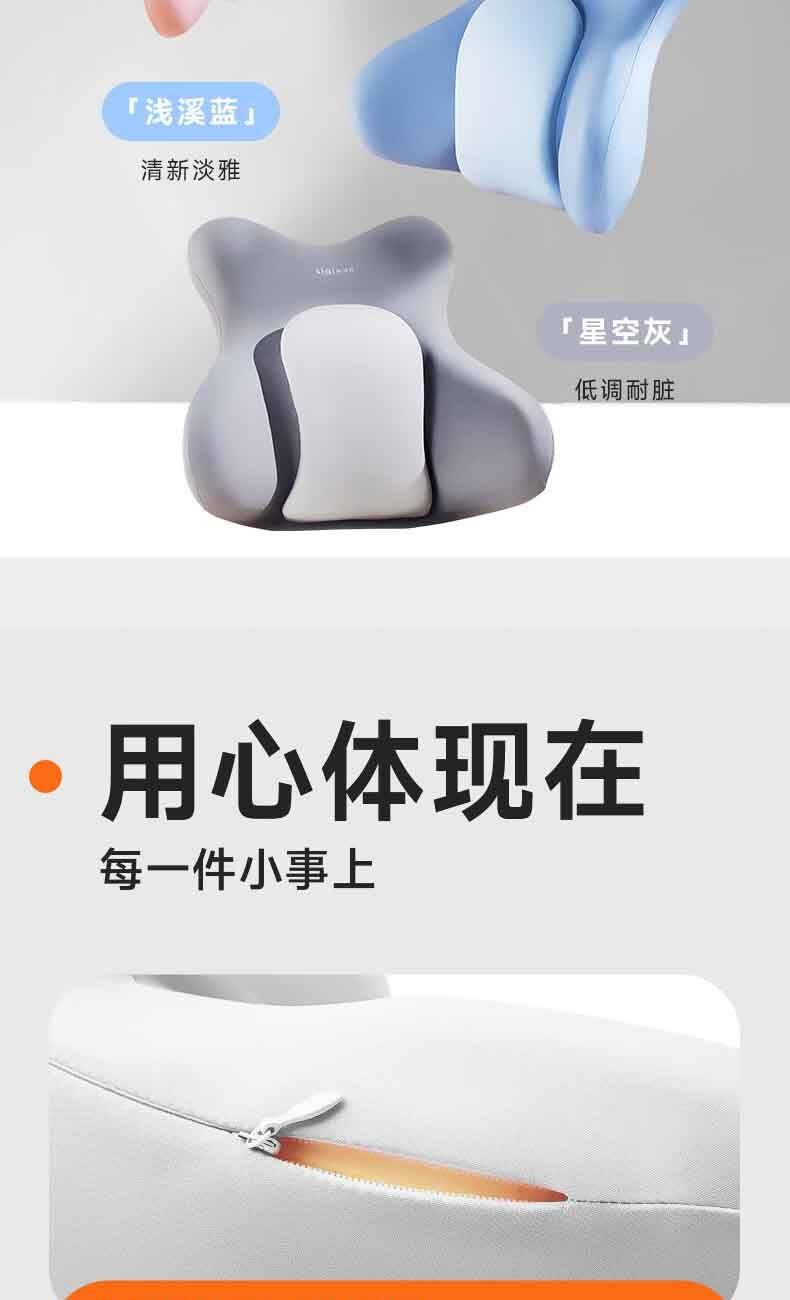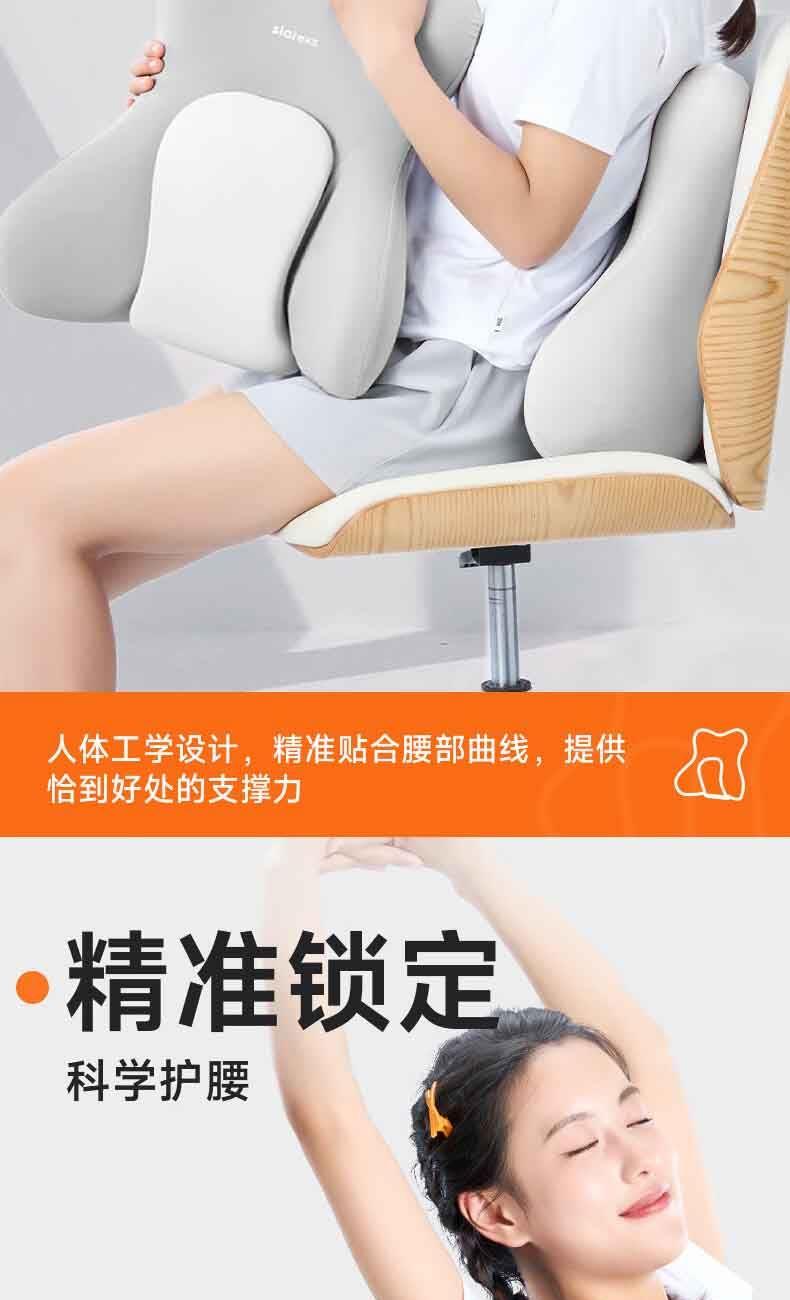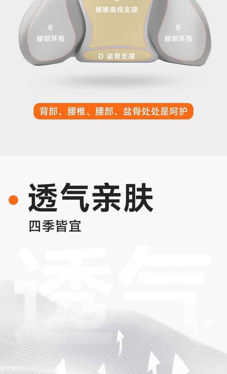 【气动调节】随心所欲调节适配角度。 【超级饱满支撑】凸起中心密度加强,顶住酸痛点。 【冰感丝材质布套】丝滑触感,久靠不闷热。 【加高设计】侧面加长,底部加宽,坐立也不会倒。 【造型独特设计】X形包裹环形托付后背。