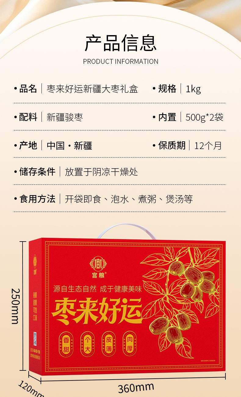 宫粮枣来好运新疆大枣礼盒1kg