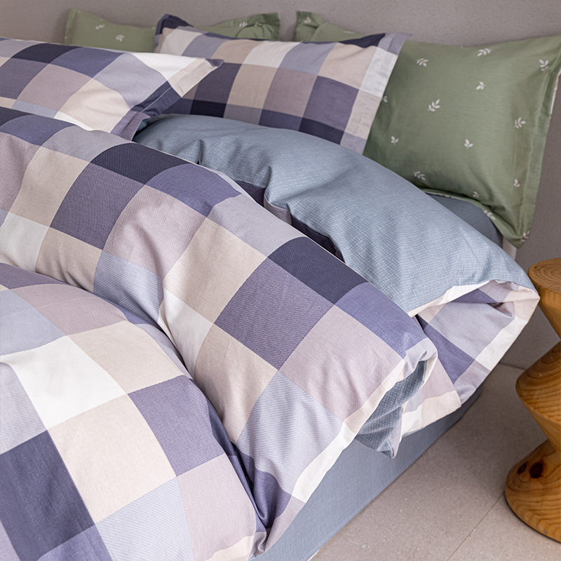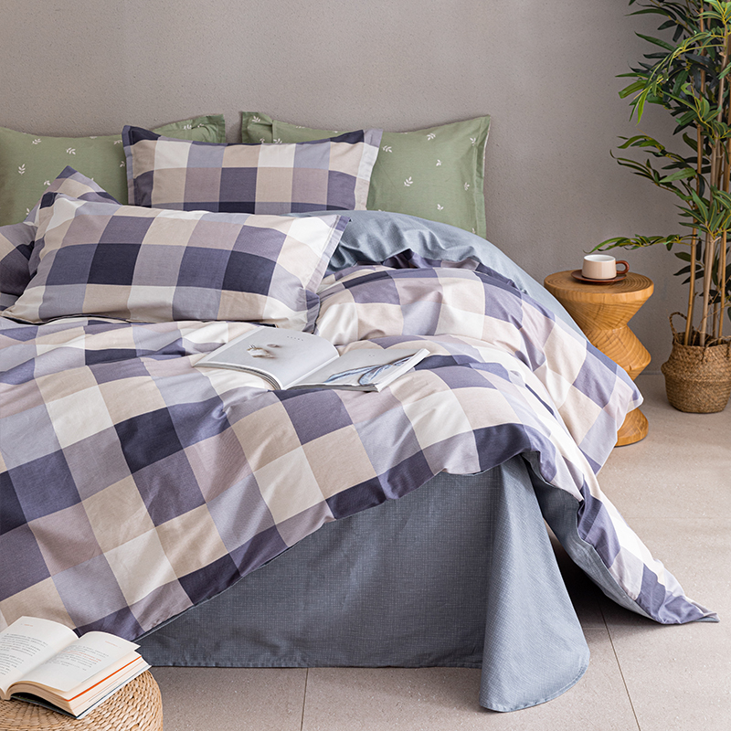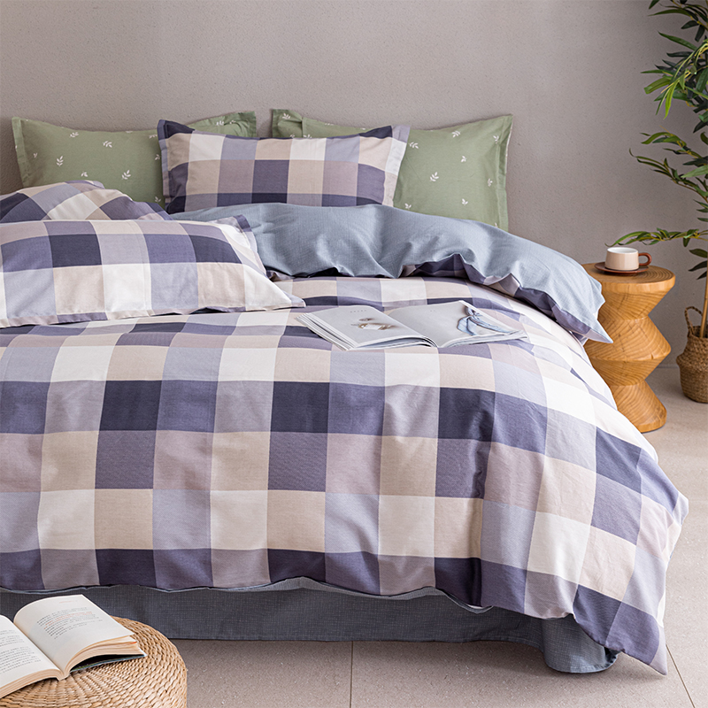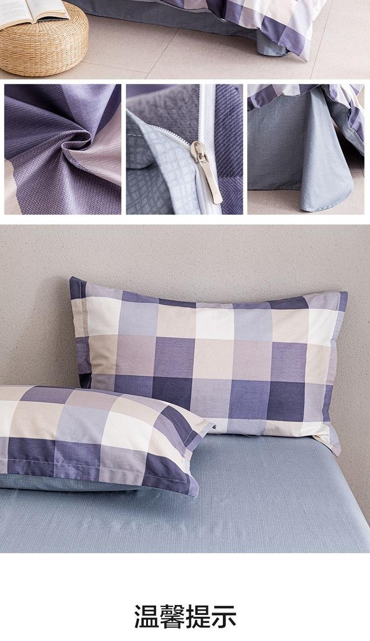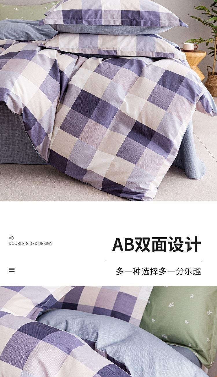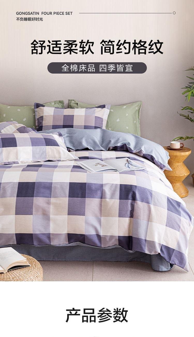 材质:棉 规格:被套*1:200*230cm,床单*1:230*250cm,枕套*2:48*74cm 纱支:40*40,适合1.5~1.8米标准床 包装:软pvc袋 (手提礼盒包装需另外支付礼盒费用) 特点:甄选阳光好棉,柔软透气,舒适耐用,私享高质量睡眠。 圆网印花,环保染料,安心贴肤;色彩靓丽,着色牢固不易褪色。 A/B双面,随心易搭配。