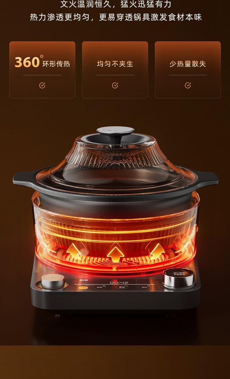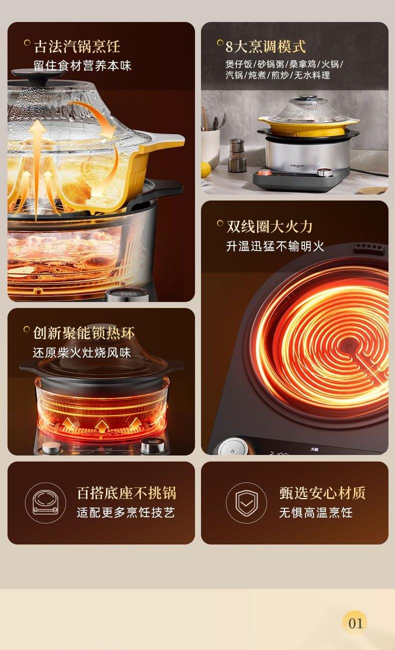 1.8大烹饪模式:煲仔饭/砂锅粥/桑拿鸡/火锅/汽锅/焖炖/煎炒/无水料理