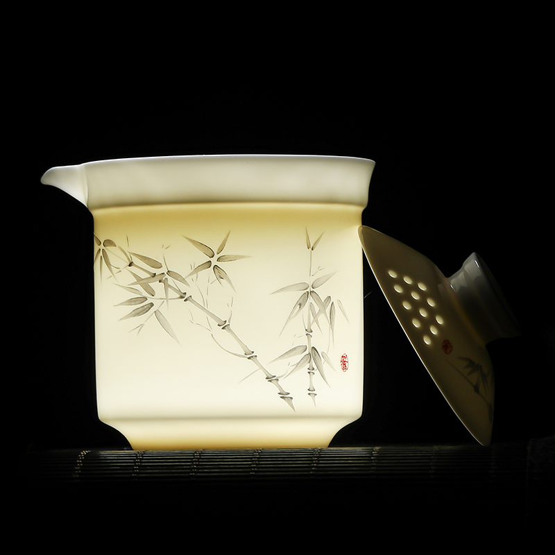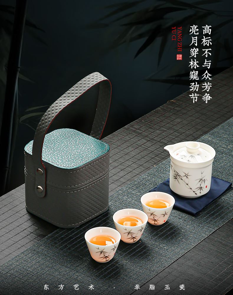瓷伽什高风亮节羊脂玉旅行茶具