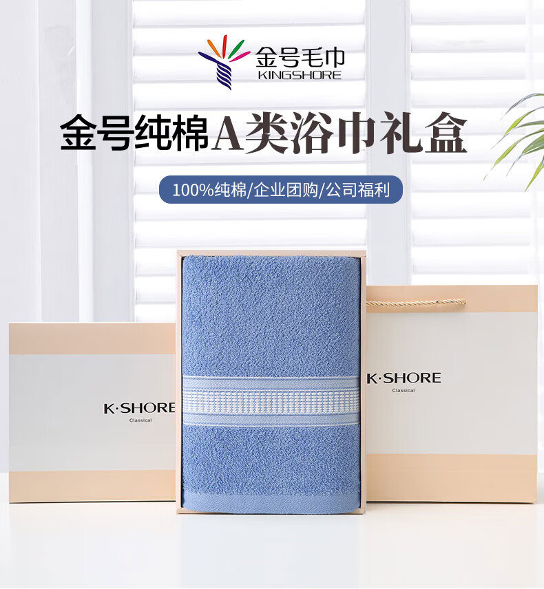 金号A类纯棉成人家用柔软吸水亲肤素色浴巾礼盒灰色