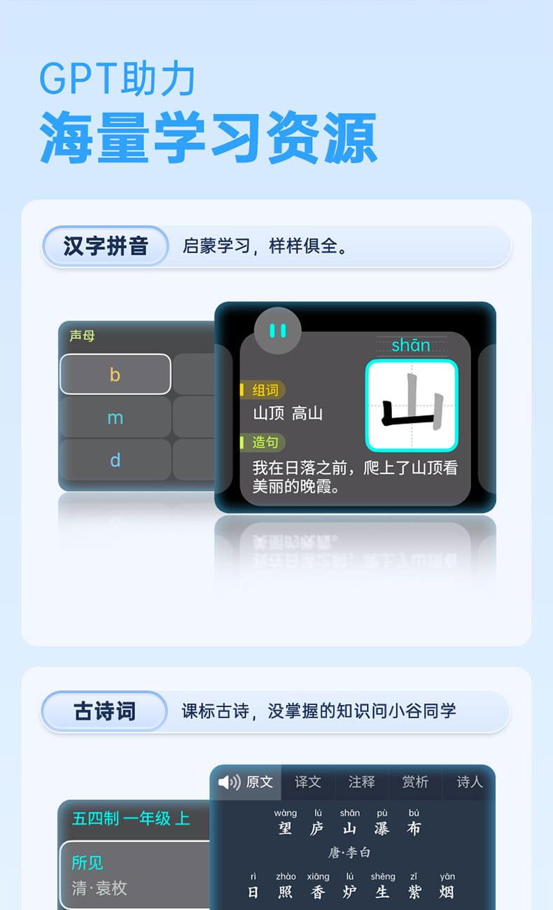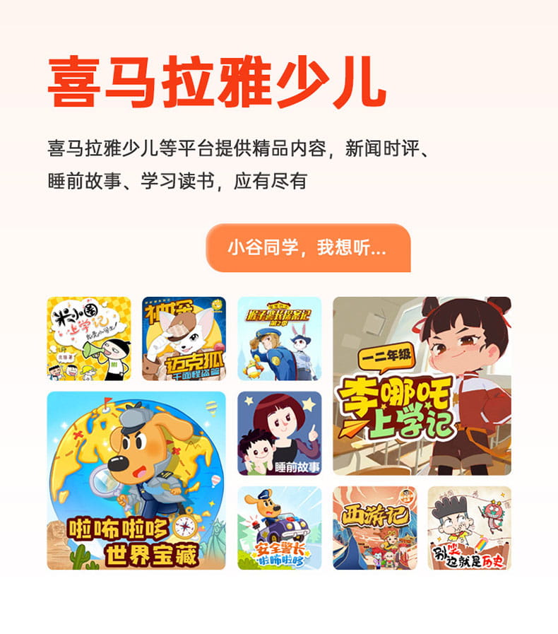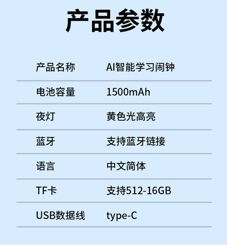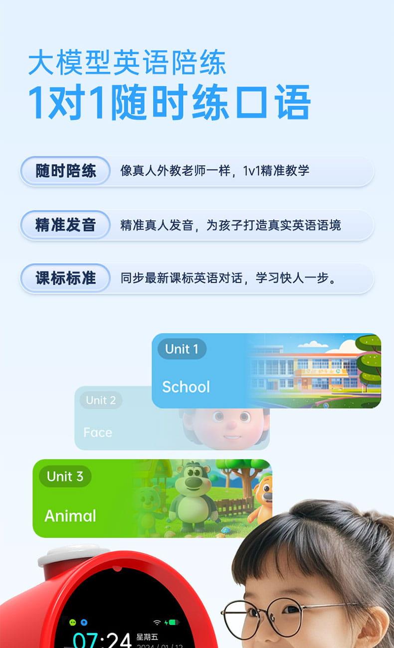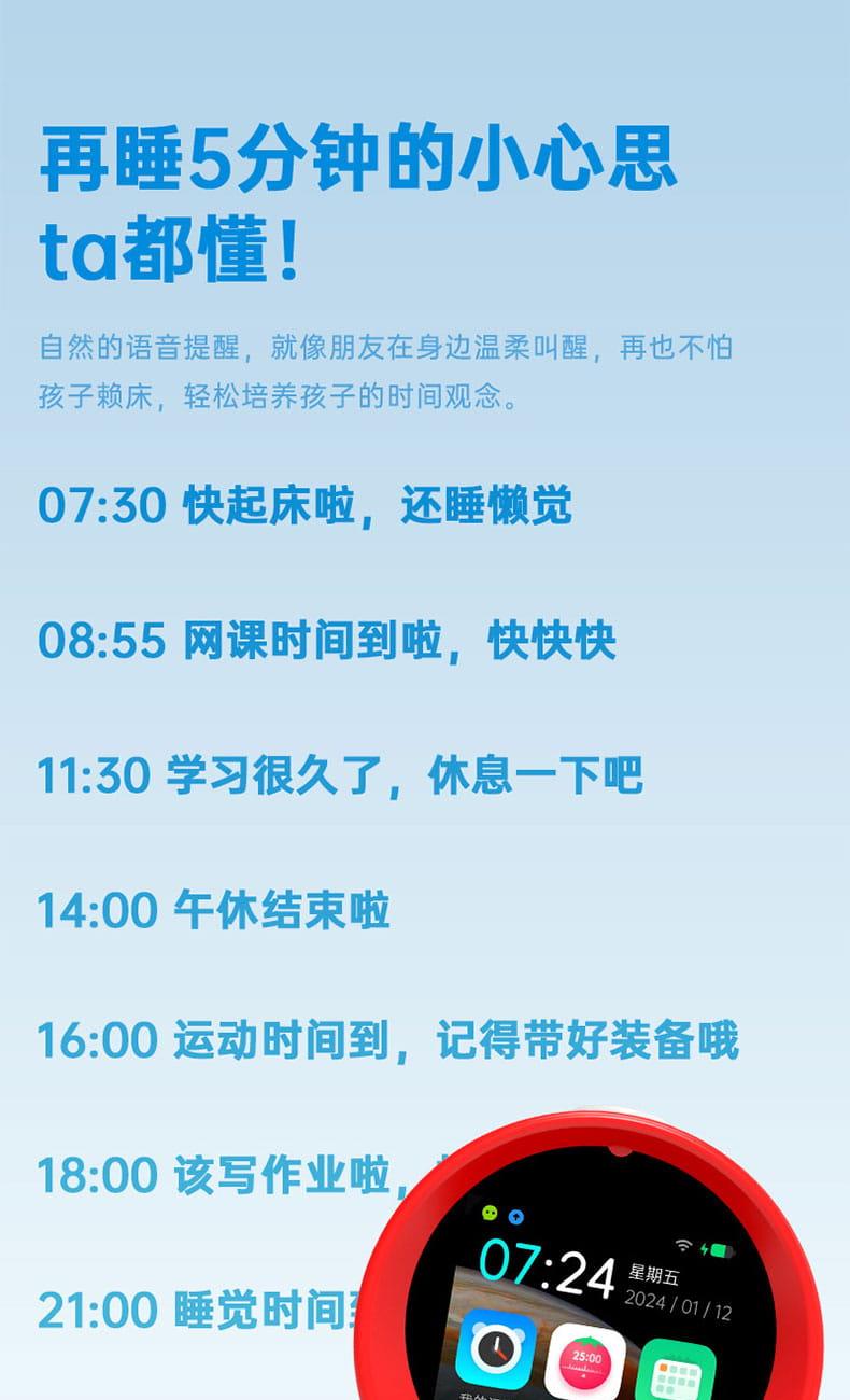 产品尺寸:150*150*100mm 电池容量:2000mAh 操作方式:单点触摸 连接方式:蓝牙、WIFI 产品颜色:红色 整套毛重:350g 整箱数量:60 智能语音交互,语音唤醒,智能问答,语音查词 番茄时间管理法,可设置50组闹钟 内置喜马拉雅少儿 K12全科教材在线同步学习