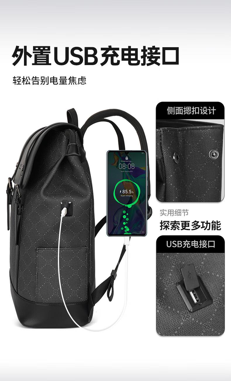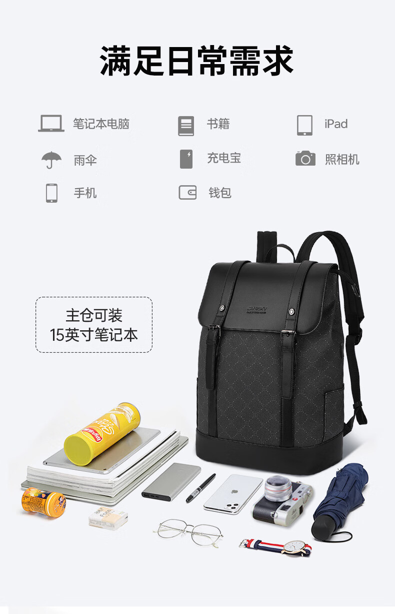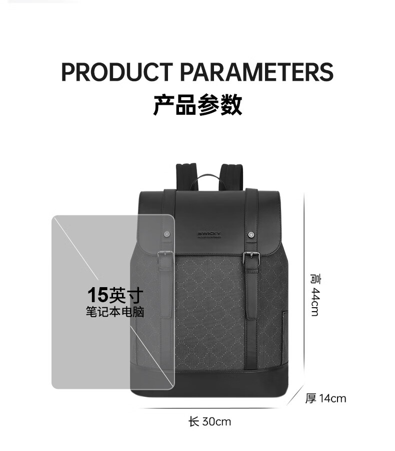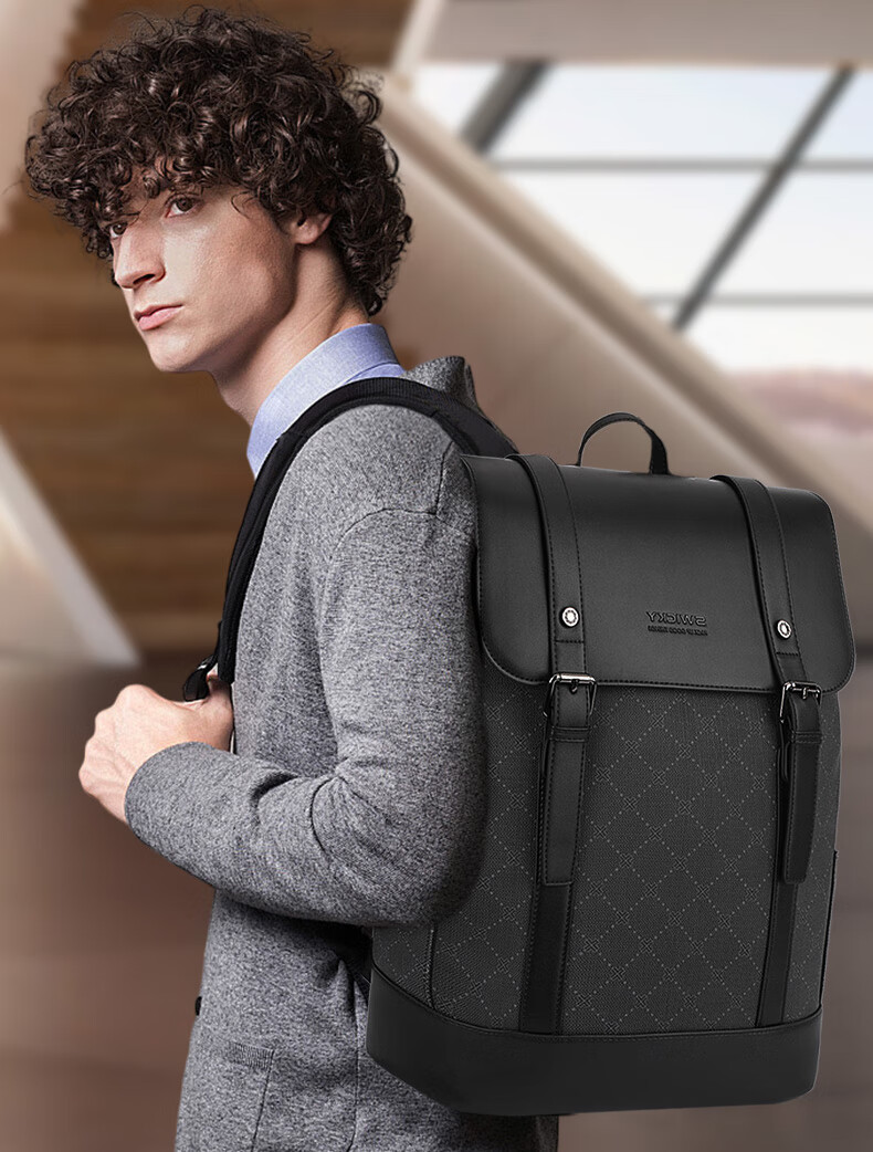 SWICKY简约双肩包大容量轻奢休闲百搭背包88176黑色