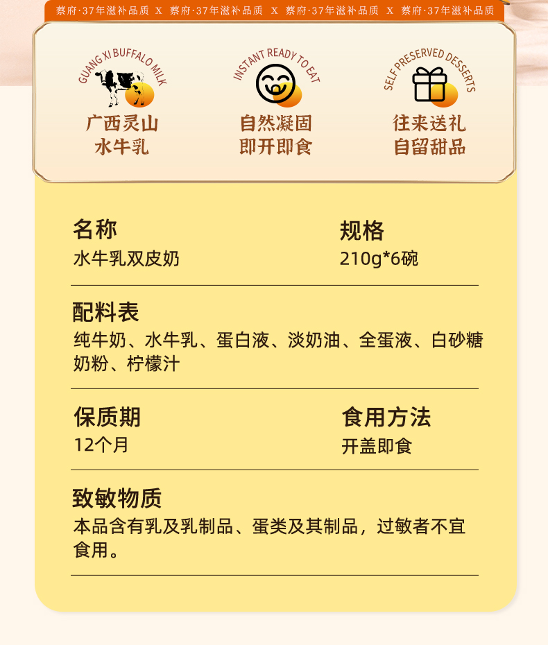 蔡府水牛乳双皮奶1.26kg(210g*6)