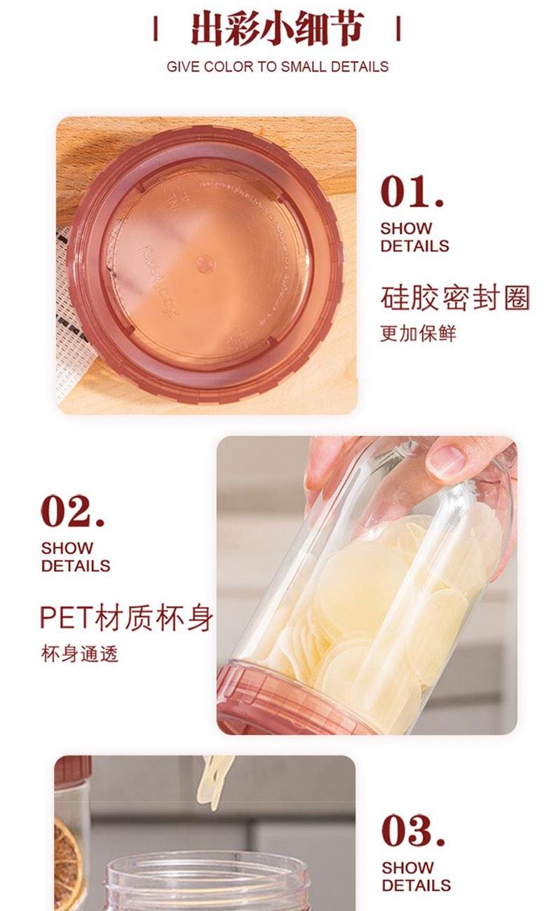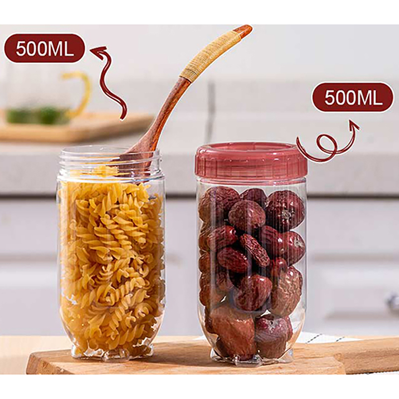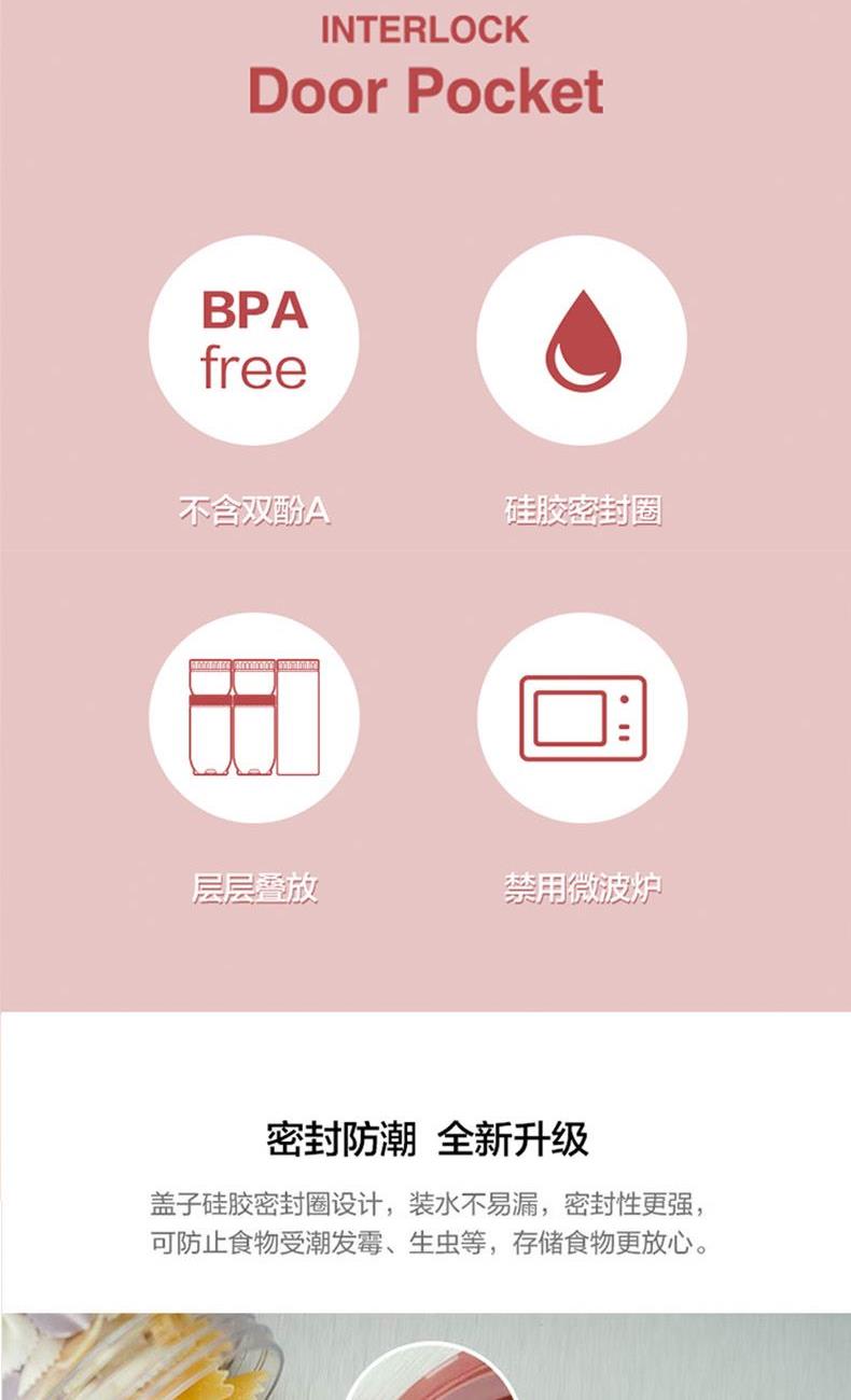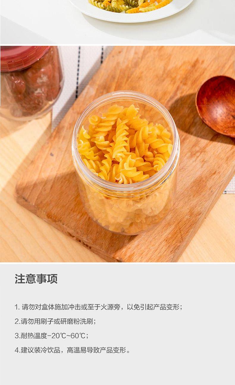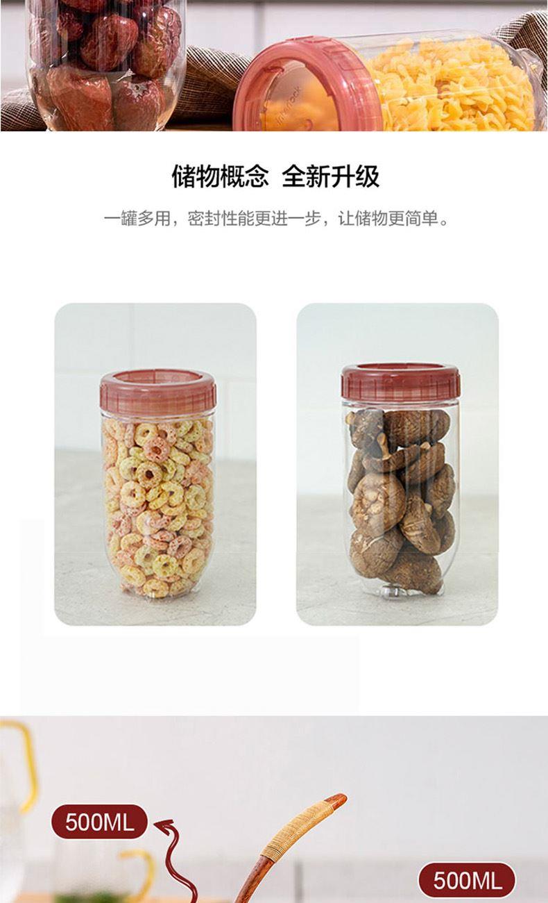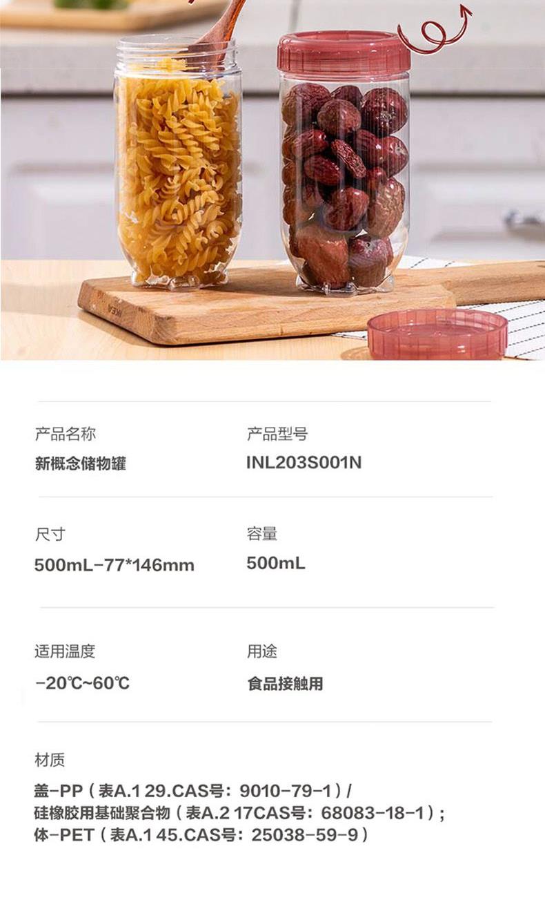 材质:盒盖-PP 盒身:PET 产品规格:500ml*2 密封防潮 焕新收纳 密封防潮 全新升级 层层堆叠 整洁收纳 透明瓶身 一目了然 大口径 易存取 储物概念 全新升级