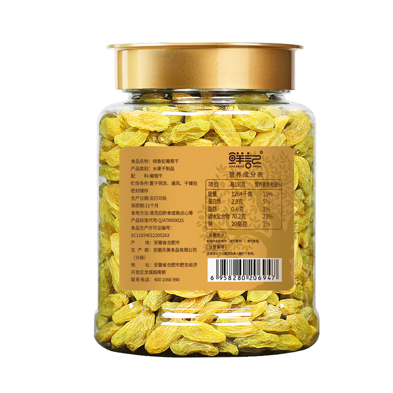 鲜记绿香妃葡萄干388g(博士帽罐装)