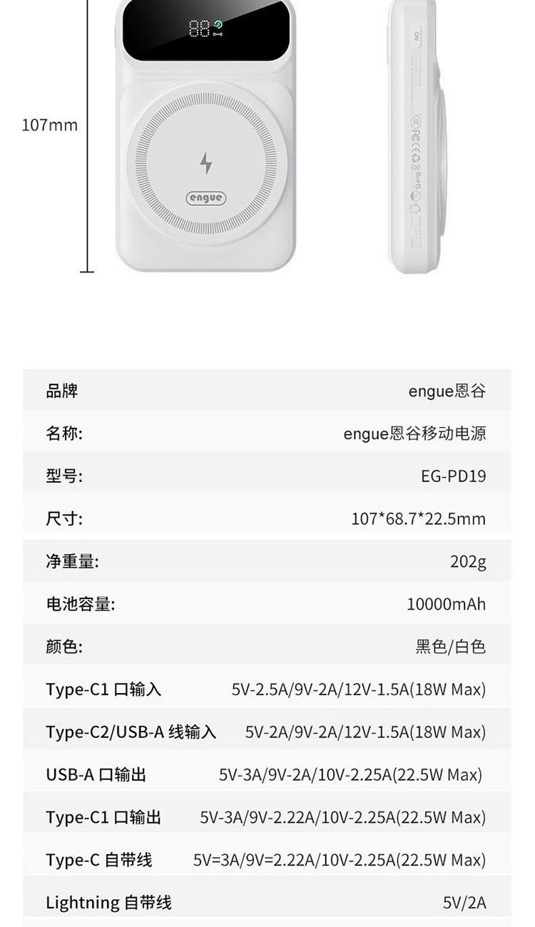 engue恩谷磁吸无线充移动电源EG-PD19
