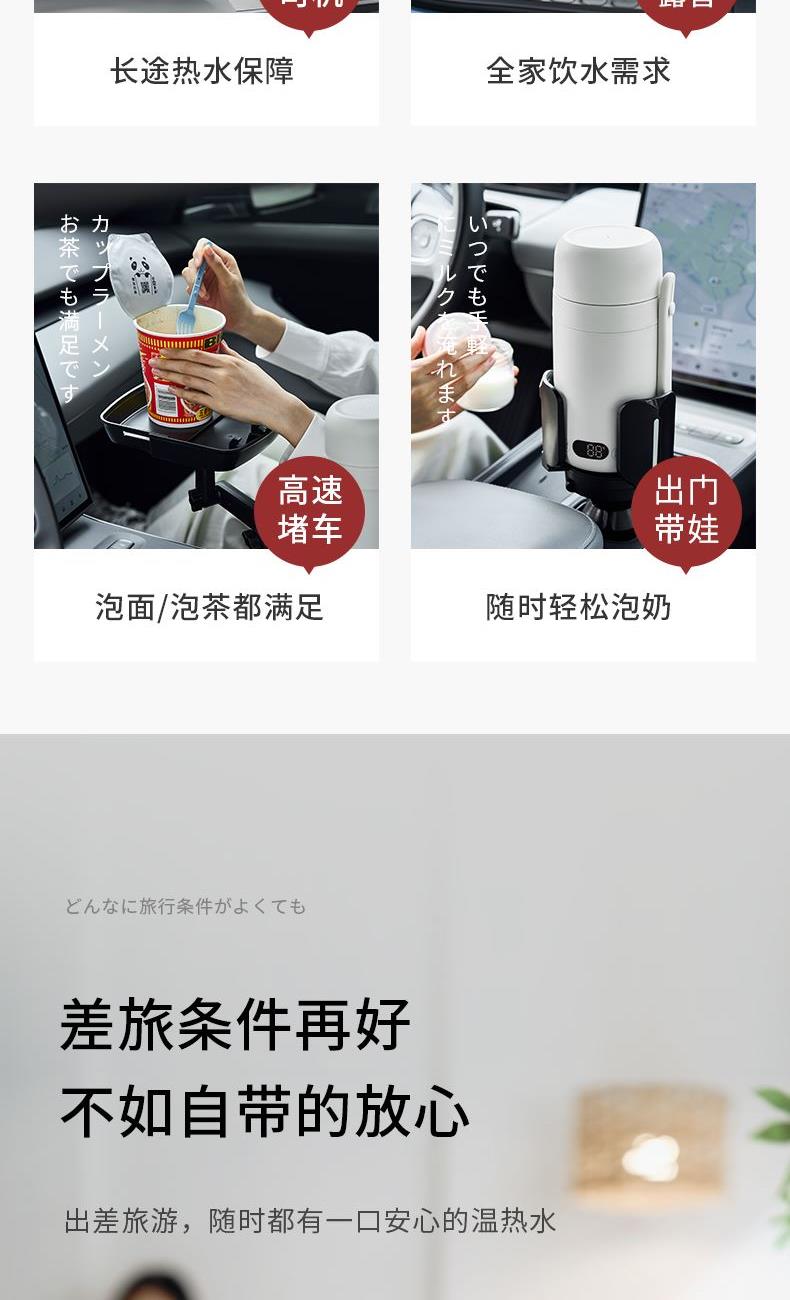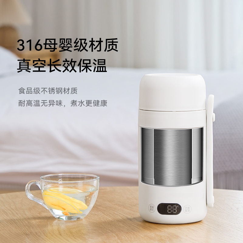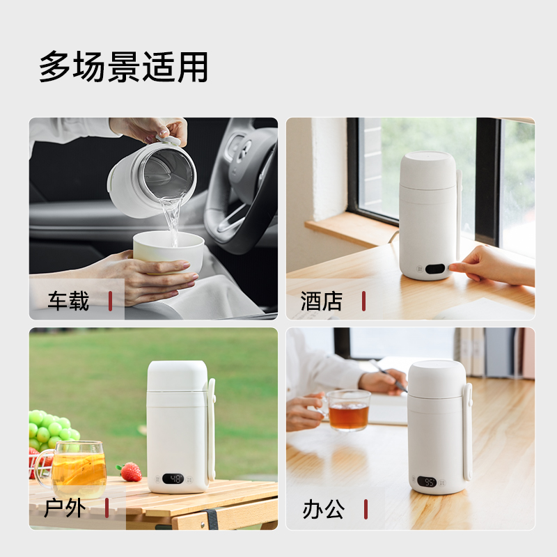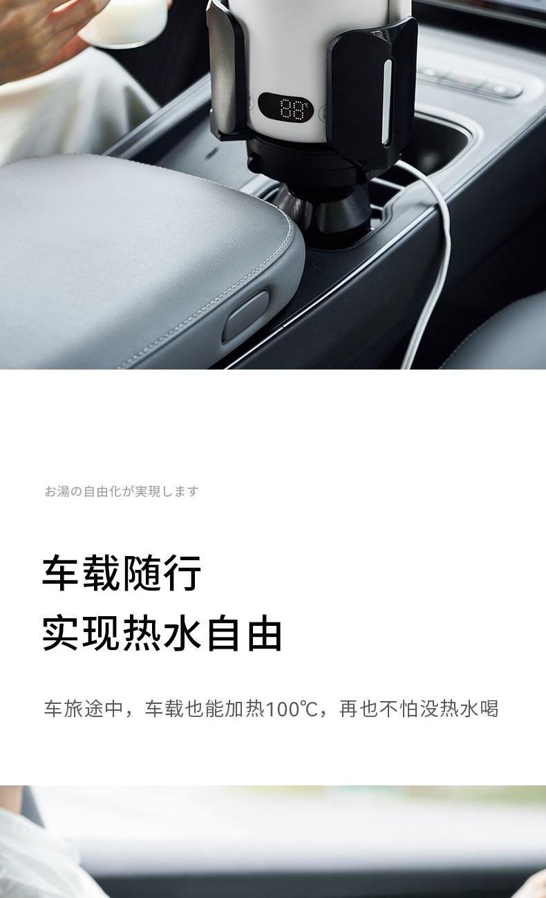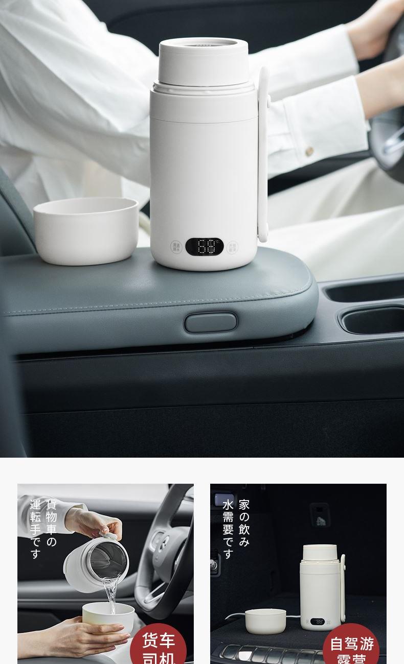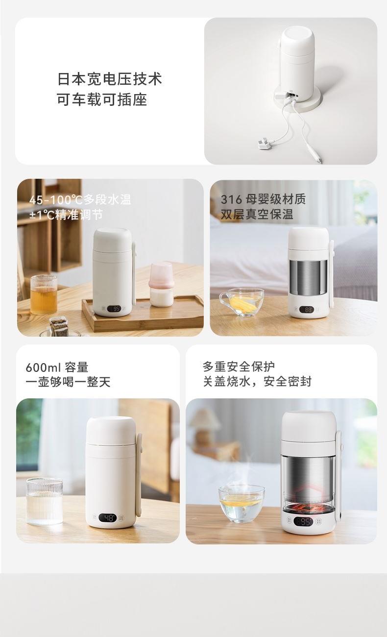 温度调节:常温-100摄氏度 材质:316不锈钢内胆 操作界面:电子 功率:500w(车载12v-70w) 一杯双盖烧水喝水二合一 • 12小时双层真空保温 • 舒适提手户外便携 • 关盖烧水安全密封 • 随行热水,一手掌握插座/车载,双模式烧水