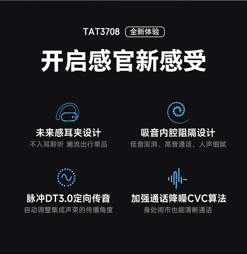1、开放式设计不入耳,无感零压迫,久戴不掉;