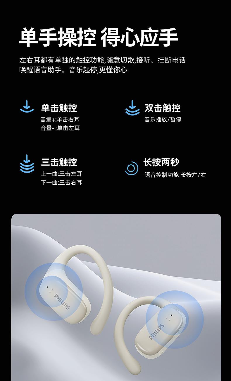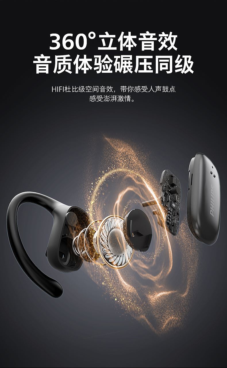 飞利浦挂耳式降噪蓝牙耳机TAT3708