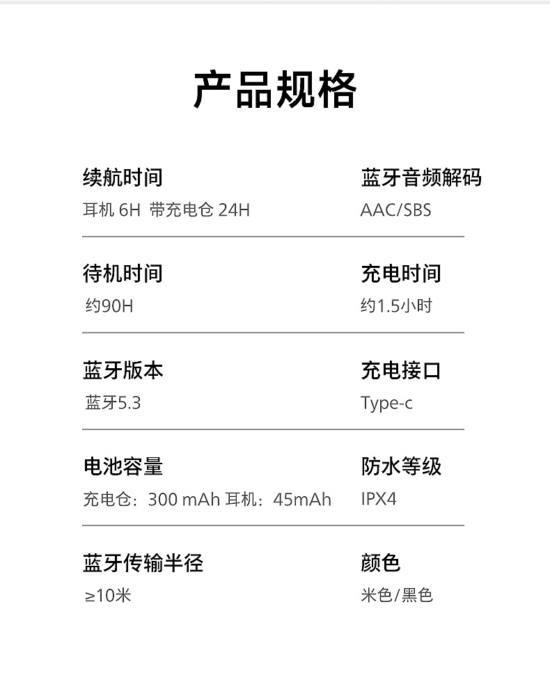 充电盒电池:300mAh